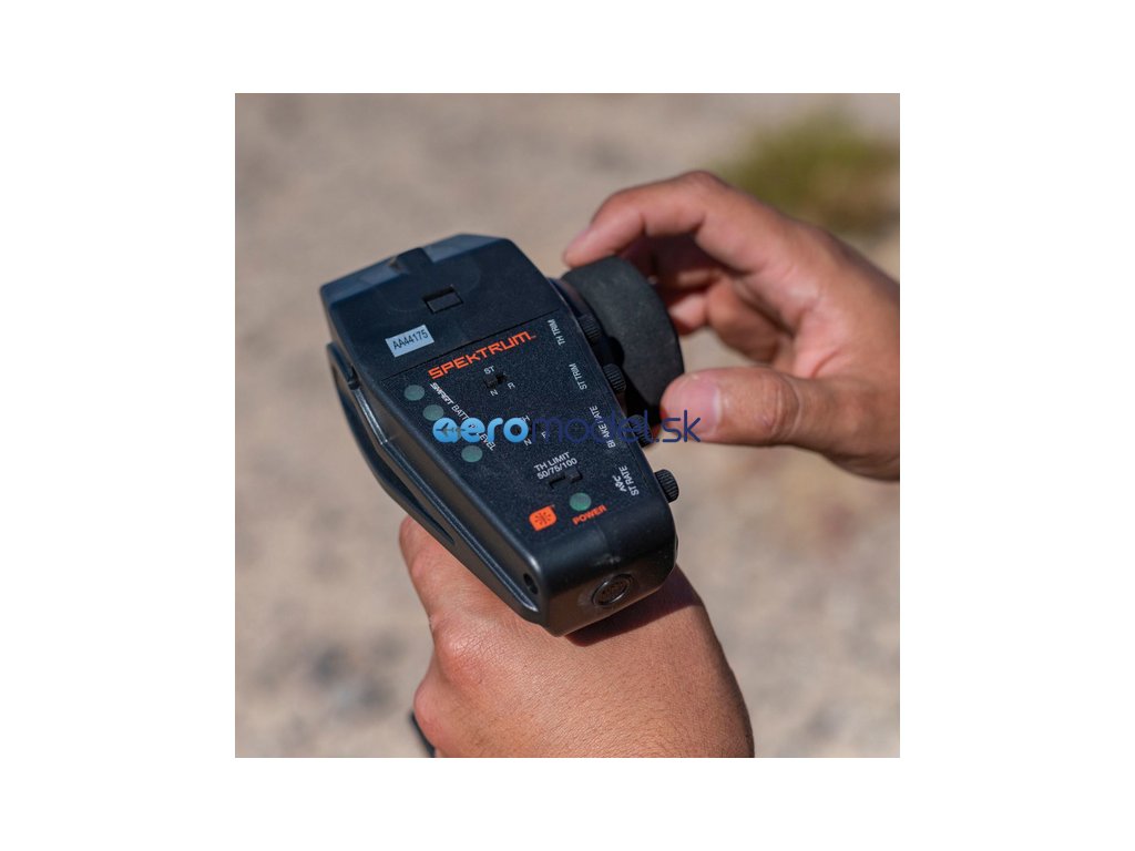 - Vysielač DX3 s indikáciou stavu pohonných batérií v modeli