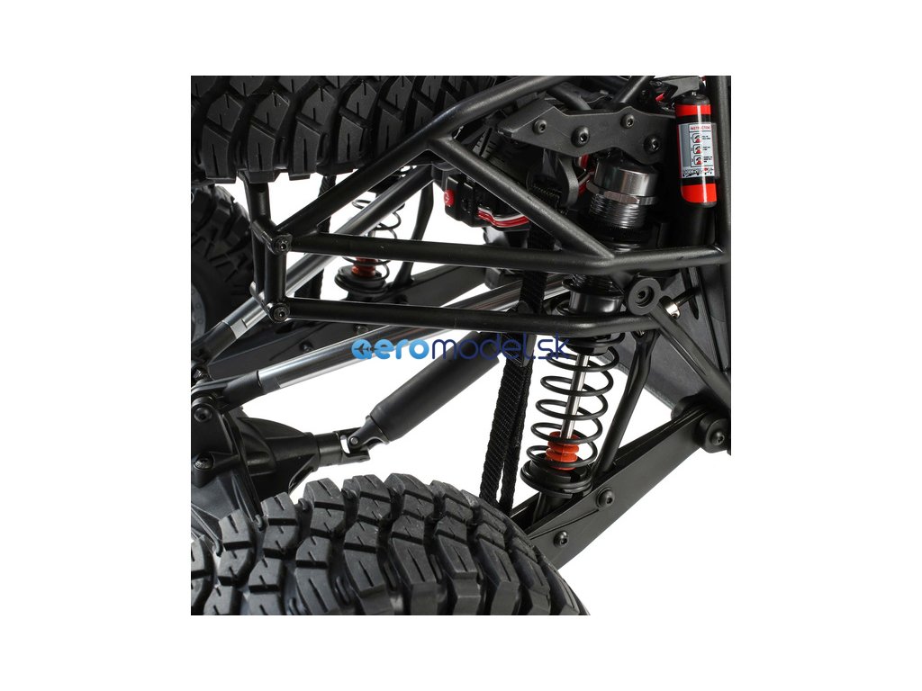 Rovnako ako veľké skutočné púštne nákladné autá je aj Super Rock Rey Rock Racer vybavený superpevnou klietkou z vysoko kompaktného materiálu, ktorá tvorí neoddeliteľnú súčasť podvozku a je integrovaná so 4 mm hrubým pevnostným hliníkovým šasi, ktoré poskytuje maximálnu ochranu komponentov a elektroniky vozidla.