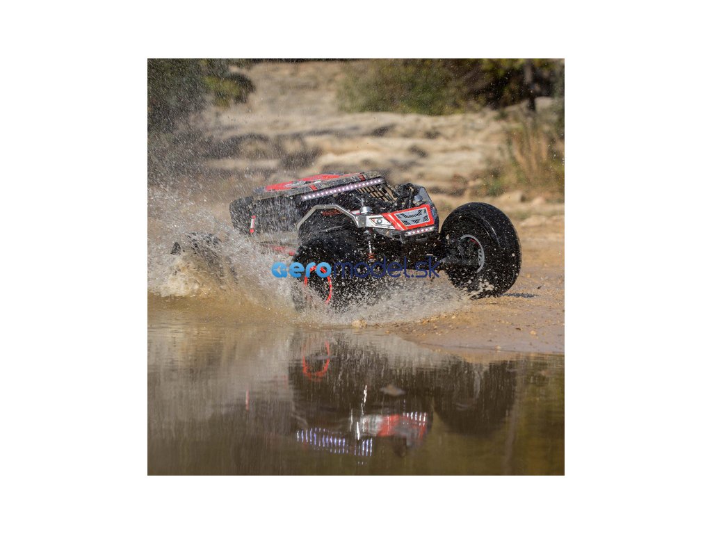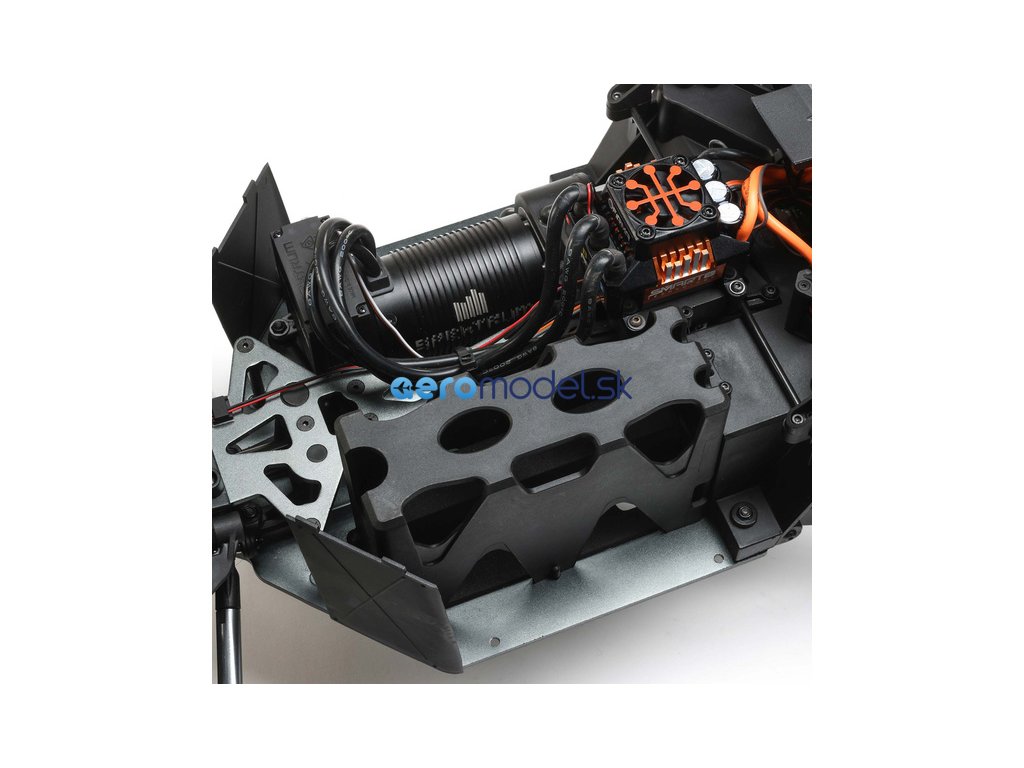 Auto je vybavené striedavým motorom Spektrum Firma 5687 so 750 otáčkami za minútu a vodotesným regulátorom Spektrum Smart Firma 160A 3-8S. Môže byť napájaný 2ks 2S 7,4V LiPol akumulátorov alebo až 4S 14,8V. Celkové napätie je teda až 8S 29,6V. V tejto konfigurácii už auto nezastaví žiadna prekážka, rýchlosť dosahuje až 80km/h!