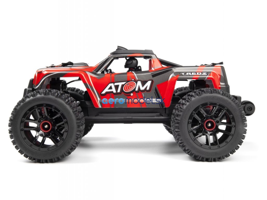 Základnu monster trucku ATOM tvoří lehká a pevná konstrukce podvozku s šestiúhelníkovým vystužením. Boční nárazové lišty chrání spodní okraj karoserie. Všechny čtyři tlumiče mají závity, umožňující snadné nastavení světlé výšky.