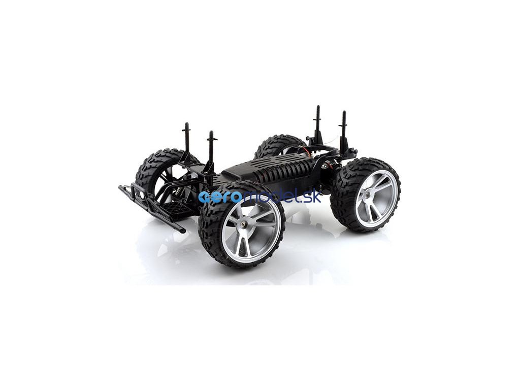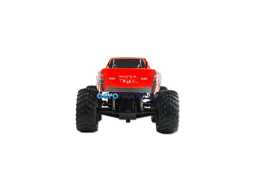 Monster Truck v mierke 1:10 so zadným náhonom a zadným diferenciálom je RC hračka na diaľkové ovládanie pre deti. Model na prvý pohľad zaujme veľkými kolesami s terénnymi pneumatikami, ktoré umožňujú jazdu na všetkých povrchoch. Vďaka predným a zadným tlmičom vás nezastaví žiadna prekážka. Robustný predný nárazník chráni model pri nárazoch. V prípade, že sa model skončí v protismere, karoséria je vyrobená z odolného plastu.