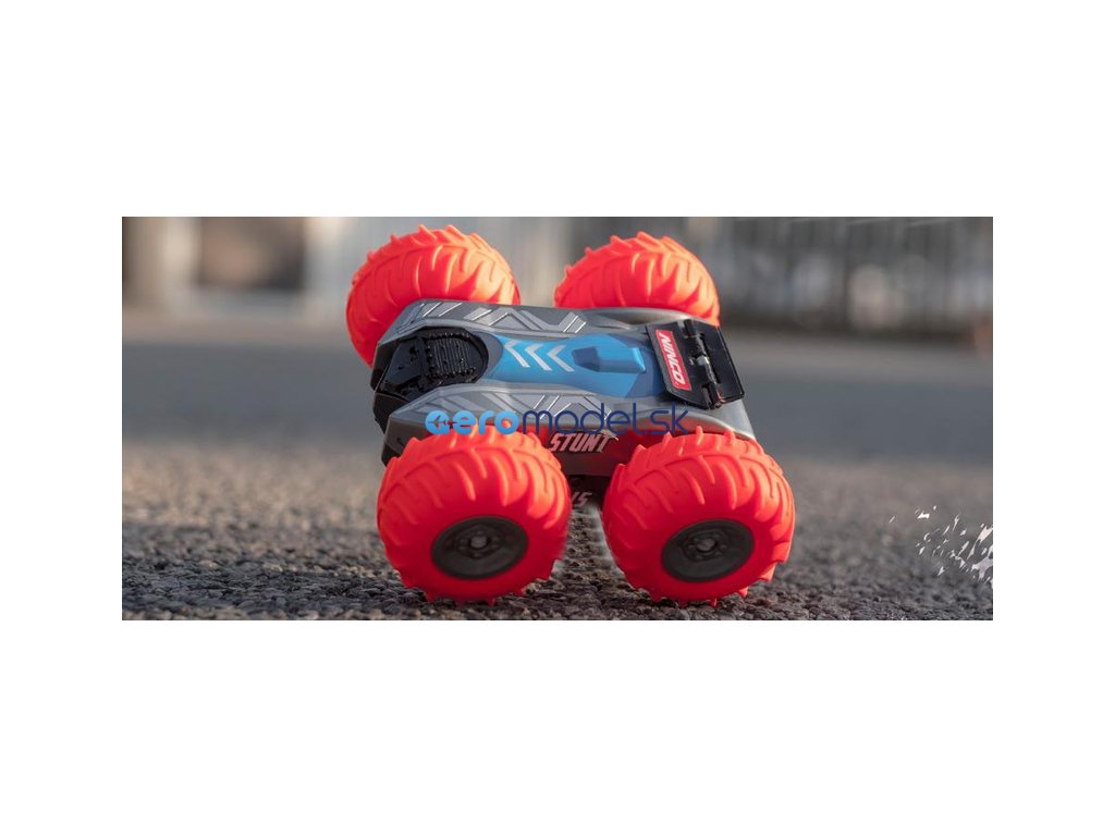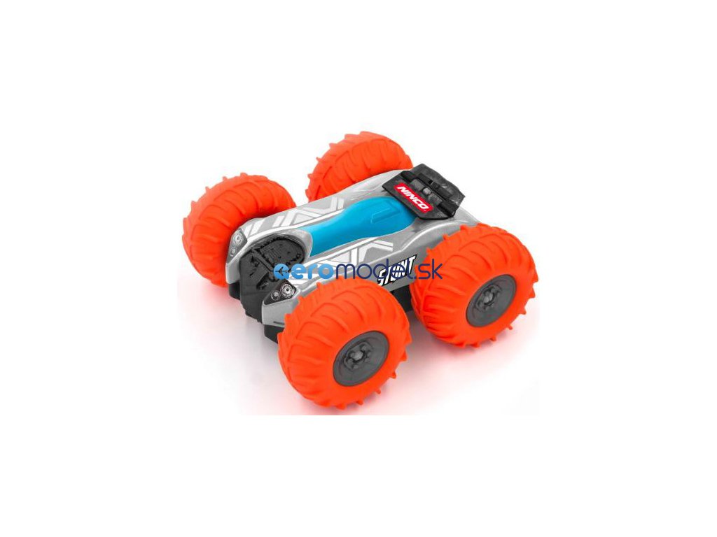 RC hračka pre deti Nincoracers Stunt Orange je novinka od spoločnosti Ninco. Obojstranný model s veľkými pneumatikami a odolnou karosériou. Nafukovacie kolesá sú pri jazde veľmi tiché a tlmia nárazy. Model je preto vhodný aj do interiéru. Vďaka silnému pohonu a rýchlej reakcii dokáže robiť úžasné triky, skoky, saltá, jazdu na dvoch kolesách. Model zdoláva strmé svahy, schádza zo schodov alebo skáče z obrubníkov. Dodávaný 27MHz pákový vysielač perfektne padne do ruky. Všetko, čo potrebuješ na jazdu, je už súčasťou balenia. Hoci rozmery modelu sú len 13x12,5x6 centimetrov, dokáže zabaviť .