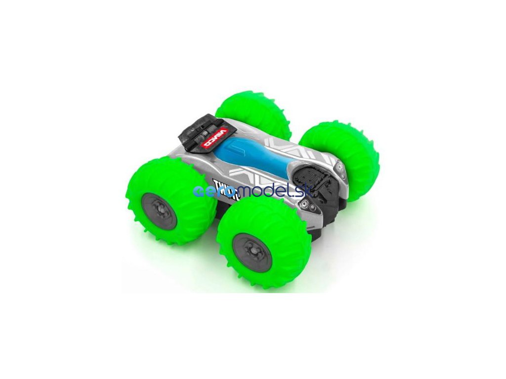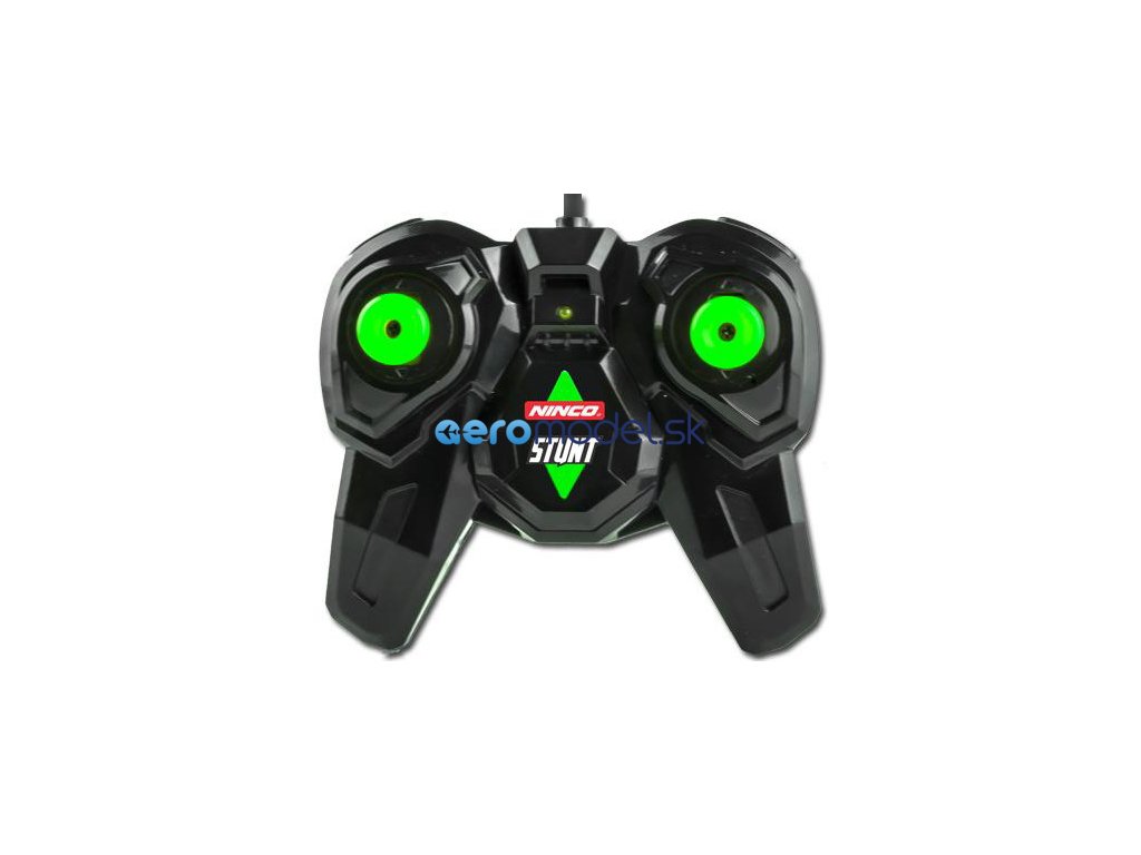 RC hračka pre deti Nincoracers Stunt Green je novinka od spoločnosti Ninco. Obojstranný model s veľkými pneumatikami a odolnou karosériou. Nafukovacie kolesá sú pri jazde veľmi tiché a tlmia nárazy. Model je preto vhodný aj do interiéru. Vďaka silnému pohonu a rýchlej reakcii dokáže robiť úžasné triky, skoky, saltá, jazdu na dvoch kolesách. Model zdoláva strmé svahy, schádza zo schodov alebo skáče z obrubníkov. Dodávaný 40MHz pákový vysielač perfektne padne do ruky. Všetko, čo potrebuješ na jazdu, je už súčasťou balenia. Aj keď sú rozmery modelu len 13x12,5x6 centimetrov, dokáže zabaviť.
