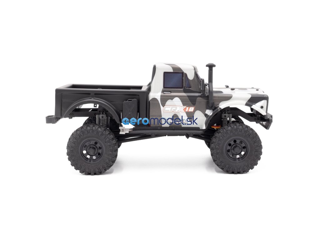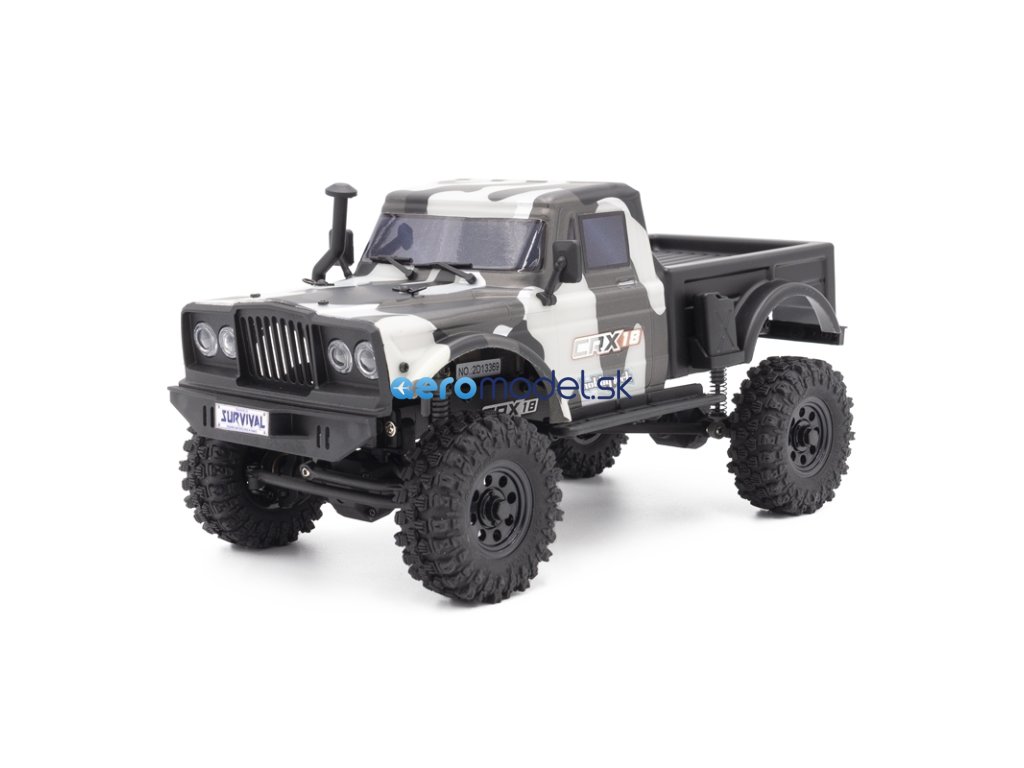 Z estetického hlediska je CRX18 věrnou kopií svého velkého bratra. Vzpěry mají stejný design jako ty, kterými je vybaven model CRX2. Karoserie má stejnou mřížku a stejné doplňky (kanystr, šnorchl, stěrače a zrcátka). A konečně, pneumatiky jsou přesnou kopií Climberů. Pěkný detail: stupačky jsou opatřeny štěrbinou, do které zapadne spodní část karoserie, aby se nepoškodila na překážkách.