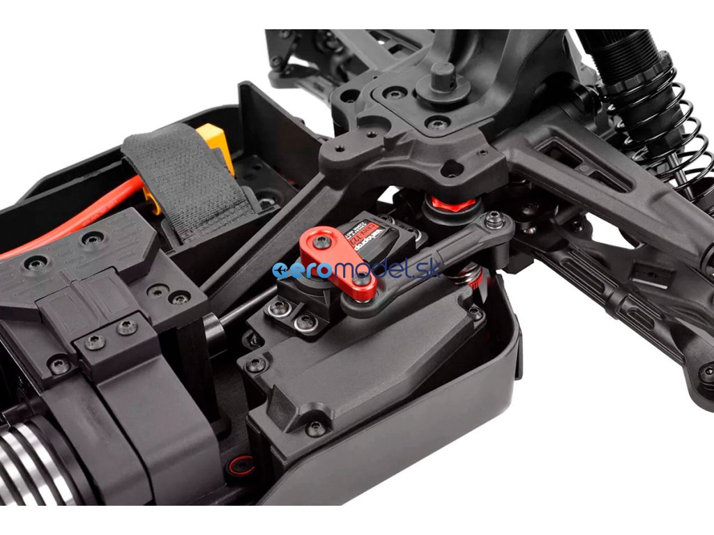 Srdcem výkonného balíčku Syncro4 Ready-to-Run je impozantní 4pólový bezsenzorový střídavý motor Kuron 725 2150 kV, který poskytuje bezkonkurenční kombinaci výkonu a účinnosti. Partnerem této bestie je elektronický regulátor otáček Torox 135, který vyniká plynulostí a spolehlivostí při krocení síly 4S LiPo. Přesnost řízení zvyšuje digitální vysokorychlostní servo HV7225 s robustními kovovými převody a působivým točivým momentem 25 kg. Tato špičková elektronika, podobná osvědčeným komponentám v modelech, jako jsou Sketer a Radix4, je zárukou vzrušujícího a spolehlivého off-roadového zážitku s modelem Syncro4.