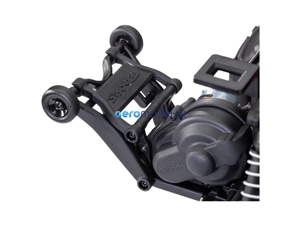 Díky zadní liště s kolečky Wheelie si můžete užít jízdu po zadních kolech bez obav o převrácení modelu. Odolný nylonový držák koleček navíc přináší extra ochranu pro motor a převodovku.