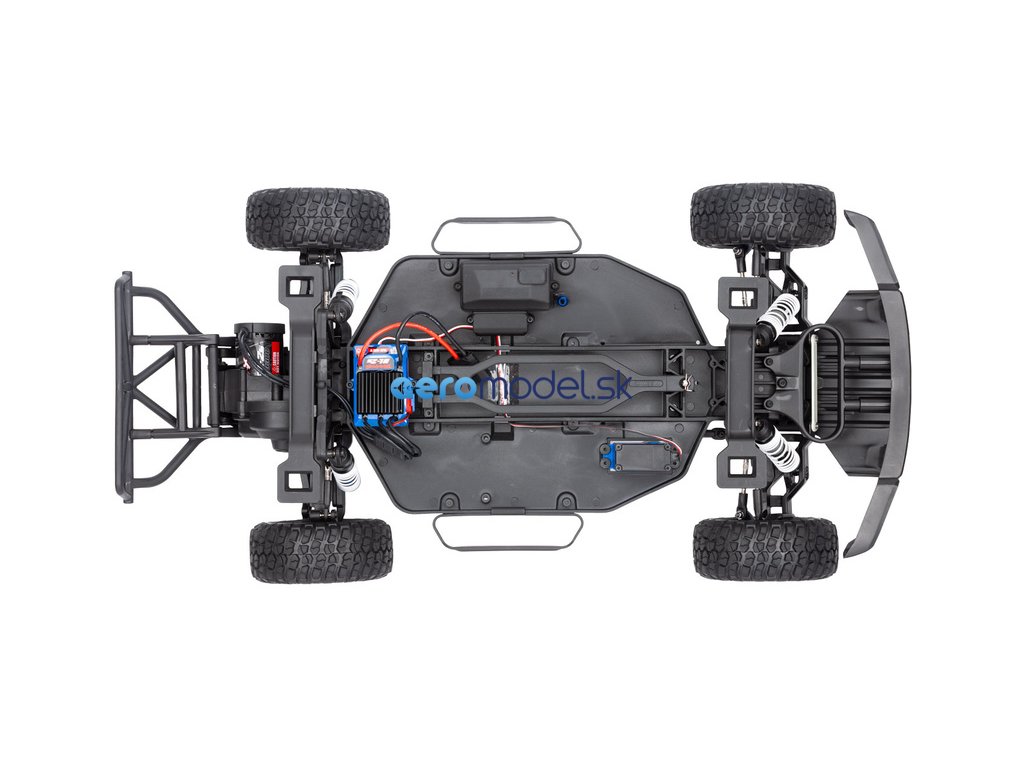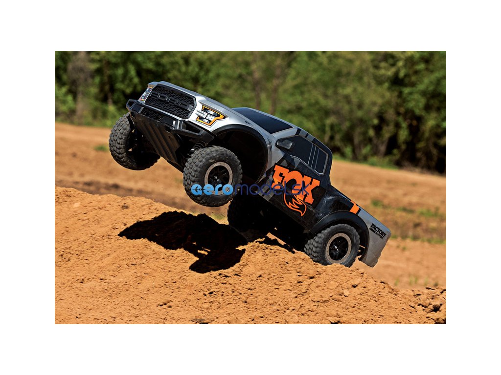 RC model auta Ford Raptor v měřítku 1:10 v sobě kombinuje úžasný vzhled detailní licencované karoserie s motivem Fox a osvědčené šasi Slash. Model je poháněn střídavým motorem a regulátorem BL-2S pro napájení 2S LiPo akumulátory. Střídavý pohonný systém přináší brutálnější akceleraci, dlouhou životnost a rychlost modelu až 56 km/h. Navíc je model továrně vybaven sadou Extreme Heavy Duty pro vysokou odolnost a exkluzivním bez-sponkovým systémem upínání karoserie.