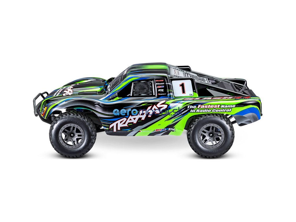 Osvědčený RC model auta Slash, který stanovil standard pro všechny ostatní modely v měřítku 1:10, přichází v nové verzi a nabitý novinkami! Slash s náhonem 4x4 je poháněn střídavým motorem a regulátorem BL-2S pro napájení 2S LiPo akumulátory. Střídavý pohonný systém přináší brutálnější akceleraci, dlouhou životnost a zvýšení rychlosti modelu až na 56 km/h. Navíc je model továrně vybaven sadou Extreme Heavy Duty pro vysokou odolnost a exkluzivním bez-sponkovým systémem upínání karoserie.