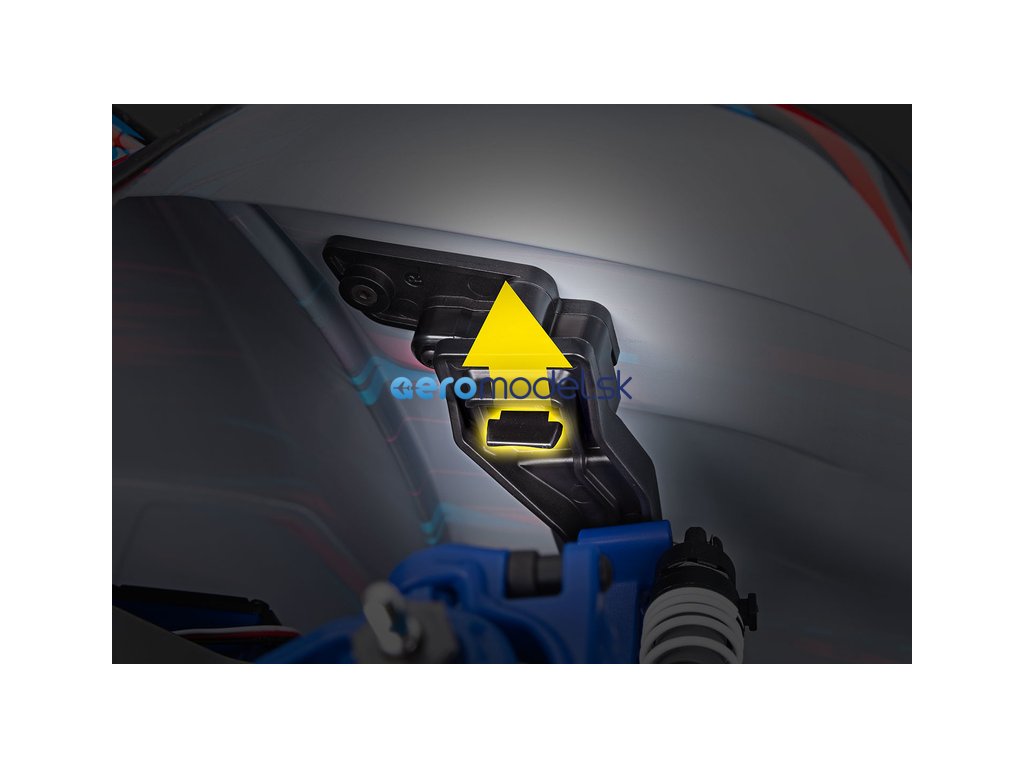 Unikátní systém uchycení karoserie pomocí zobáčků v podbězích kol, umožňuje rychlou a snadnou výměnu baterie a čistý vzhled modelu neruší klipy.