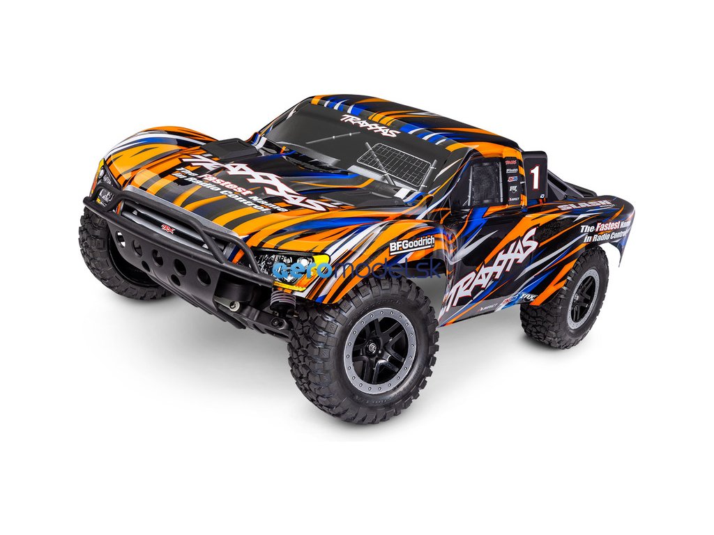 Traxxas Slash je výkonný RC model auta v měřítku 1:10 s náhonem 2WD a rychlostí až 56 km/h. Je plně sestaven a připraven k jízdě. Pohání jej výkonný střídavý motor s regulátorem BL-2S. Jednoduchá RC souprava Traxxas TQ 2.4 GHz poskytuje precizní mechaniku pro přesné řízení. Navíc je model továrně vybaven komponenty sady Extreme Heavy Duty pro vysokou odolnost a exkluzivním bez-sponkovým systémem upínání karoserie.