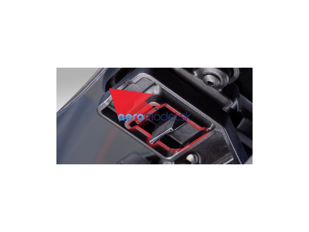 Unikátní systém uchycení karoserie pomocí zobáčků v podbězích kol, umožňuje rychlou a snadnou výměnu baterie a čistý vzhled modelu neruší klipy. Na rozdíl tradičních sloupků s klipy přiléhá karoserie k bezsponkovému držáku mnohem větší plochou a nepopraská.