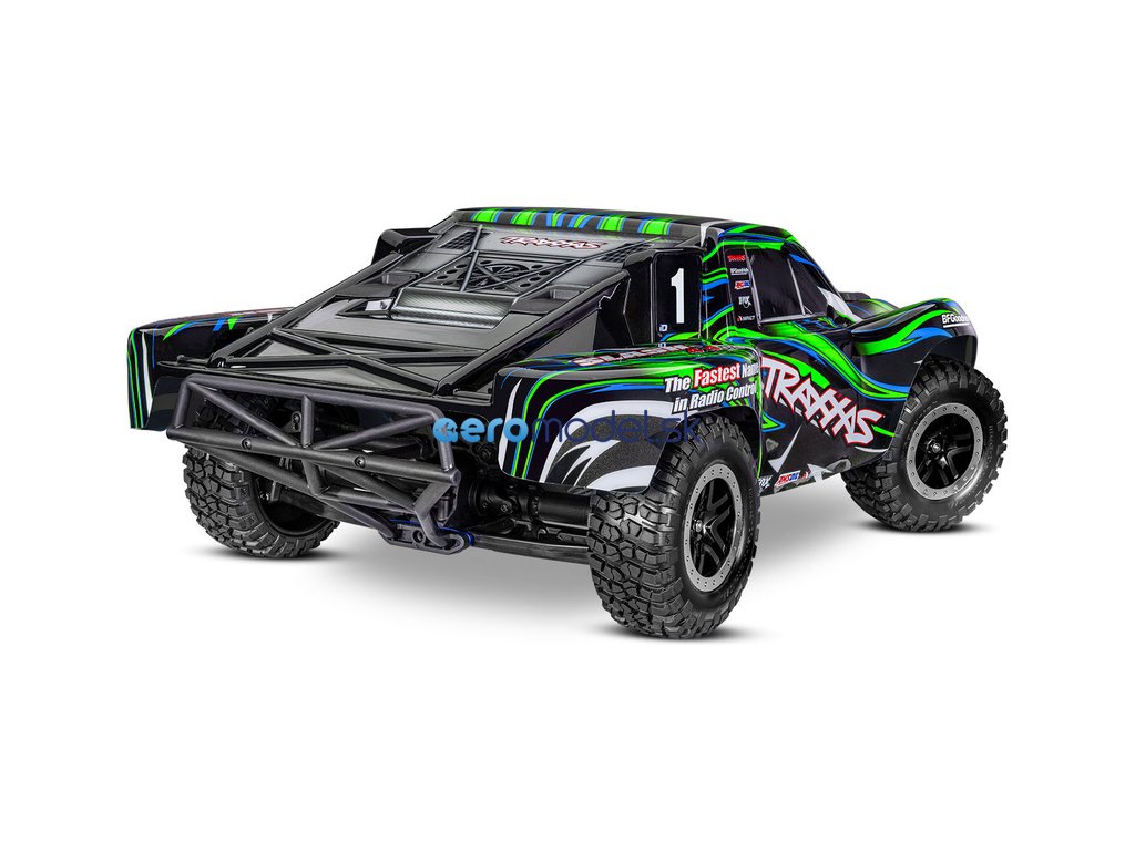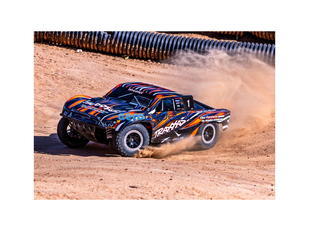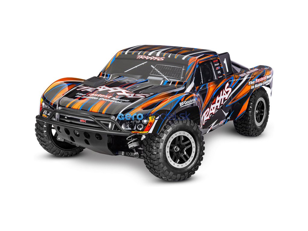 Osvědčený RC model auta Slash, který stanovil standard pro všechny ostatní modely v měřítku 1:10, přichází v nové ještě odolnější verzi vybavené těmi nejpevnějšími komponenty Extreme Heavy Duty. Pro brutální akceleraci a rychlost až 96 km/h je model vybaven střídavým motorem Velineon 550. K výborné ovladatelnosti přispívá nezávislé zavěšení, náhon 4x4 a elektronická stabilizace jízdy TSM. Nově exkluzivní bez-sponkový systém upínání karoserie pro snadnou výměnu baterie a čistý vzhled.
