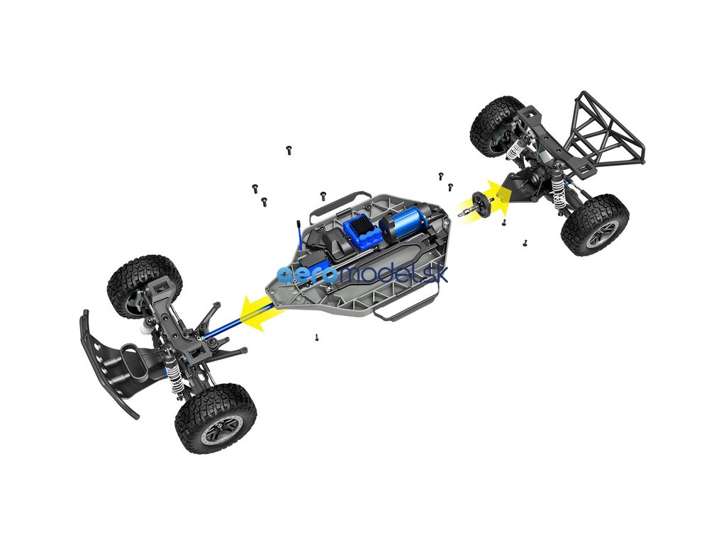 Modulární konstrukce umožňuje odstranit celou přední část povolením 5 šroubů a zadní sestavu povolením 4 šroubů. Během minuty máte přístup ke všem důležitým součástem, nastavení modelu a servisní údržbě. Pevné, zesílené nárazníky chrání model před nárazy, zároveň jsou navrženy tak, aby byly zachovány vysoké nájezdové úhly.