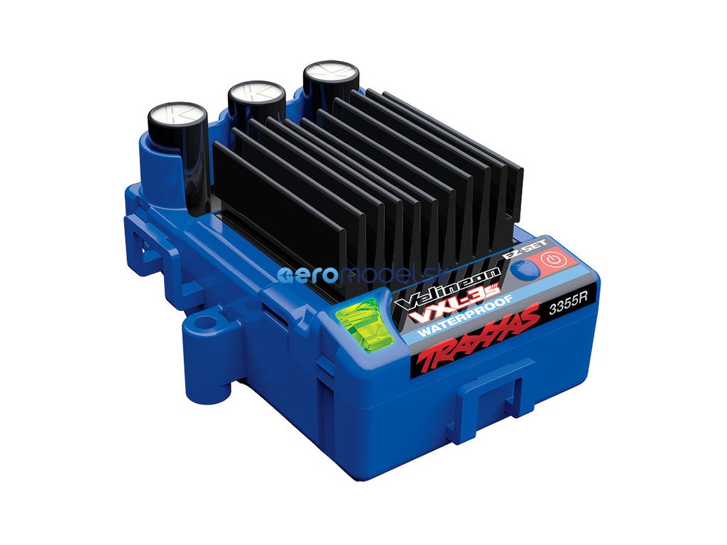 Voděodolný* elektronický Traxxas střídavý regulátor Velineon VXL-3S V2 se třemi jízdními režimy, podporou moderních vysokokapacitních LiPo akumulátorů a snadným ovládáním tlačítkem EZ-Set™. Regulátor VXL-3S je vybaven tréninkovým režimem, který omezuje plný plyn na úroveň 50%. Díky tomu se mohou začínající řidiči nebo děti postupně seznámit s vlastnostmi modelu a připravit se na plnou sílu auta. Tepelná ochrana, pozlacené konektory, jednoduché ovládání a intuitivní signalizace dvoubarevnou LED diodou.