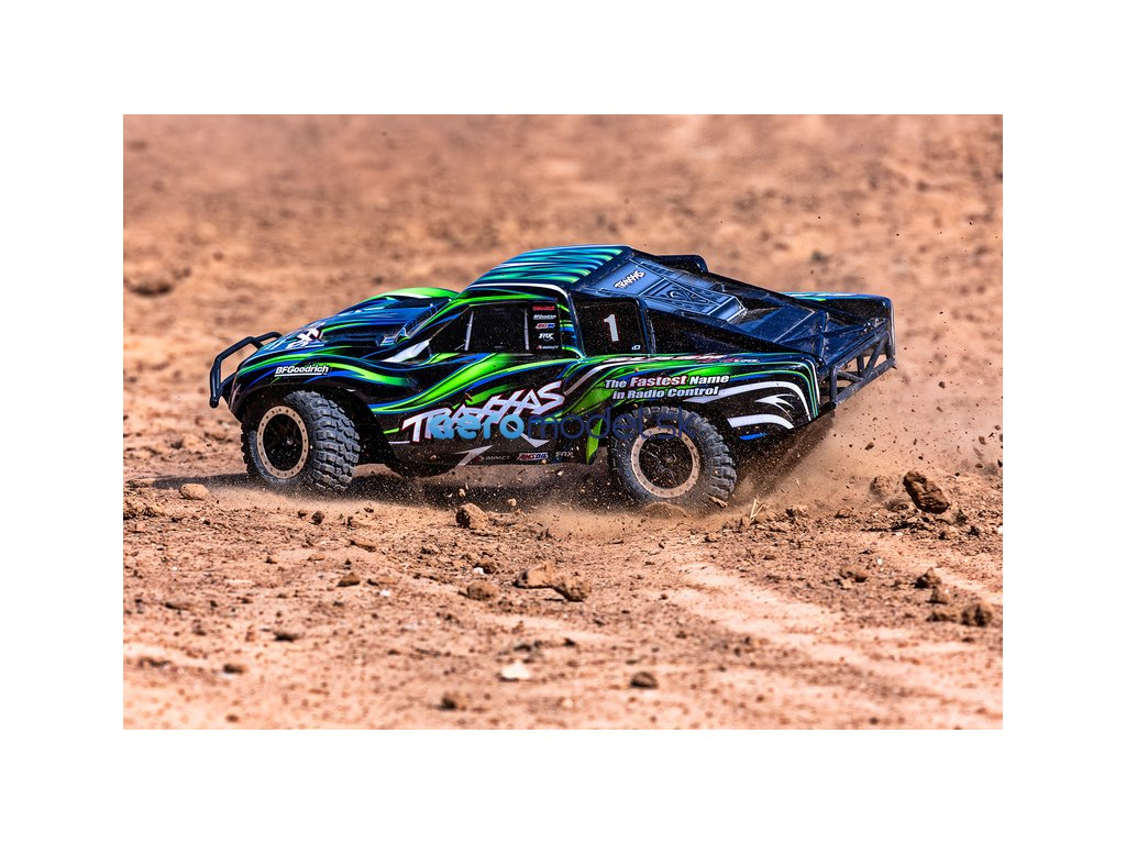 Výborná konstrukce modelu Slash byla zachovaná, včetně modulární konstrukce šasi, špičkové geometrie zavěšení s dlouhým zdvihem ramen, olejových tlumičů, pohonného ústrojí s třecí spojkou a předního a zadního diferenciálu. Díky náhonu 4WD a střídavému pohonu zažijete nespočet hodin perfektní ovladatelnosti a bleskové akcelerace. Maximální trakci zajistí licencované pneumatiky BFGoodrich® Mud-Terrain™ T/A® s vynikající přilnavostí za všech podmínek.