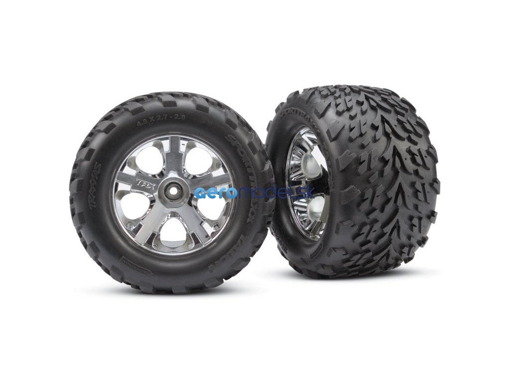 Stampede jezdí na velkých chromovaných kolech All-Star 2.8". Jedinečná pryžová směs pneumatik Talon má vysokou přilnavost na široké škále povrchů včetně hlíny, trávy, betonu i kamenů.