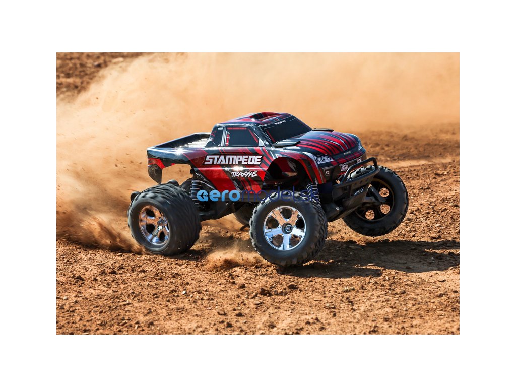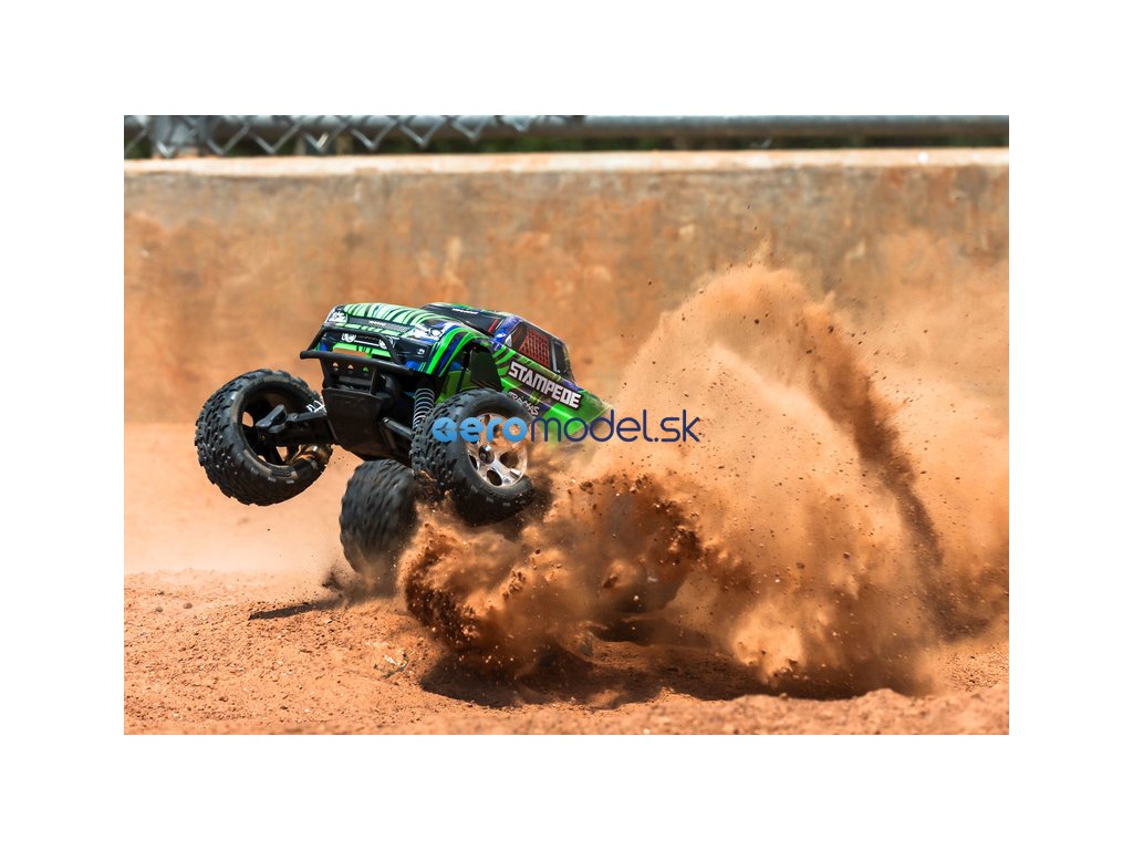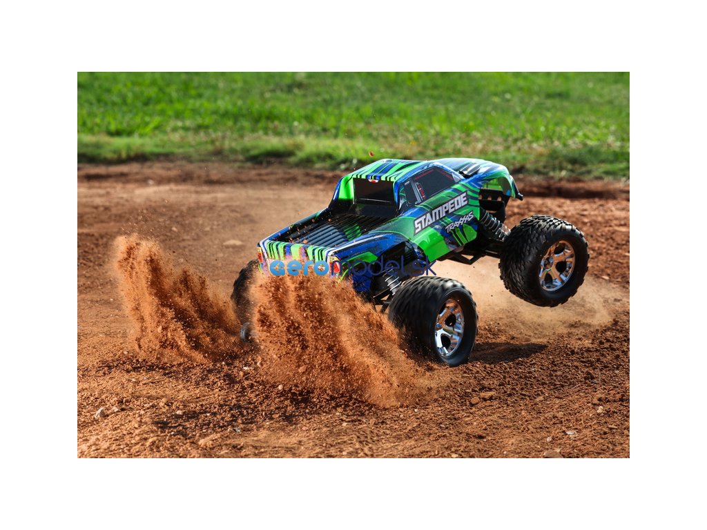 RC model auta Stampede 1:10 HD RTR, je poháněn stejnosměrným motorem Titan 550 a regulátorem XL-5 pro napájení 2S LiPo akumulátory. Model jezdí až 48 km/h! Navíc je továrně vybaven sadou Extreme Heavy Duty pro vysokou odolnost a exkluzivním bez-sponkovým systémem upínání karoserie. Vše pro provoz je obsahem balení včetně vysílače, pohonné baterie a USB-C nabíječe.