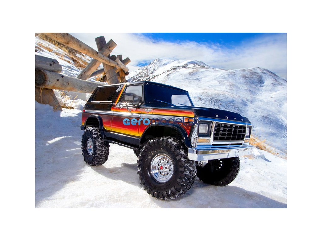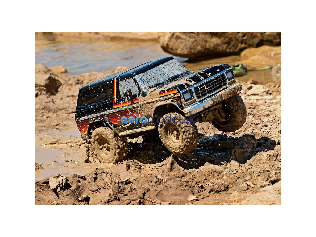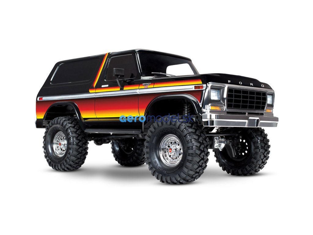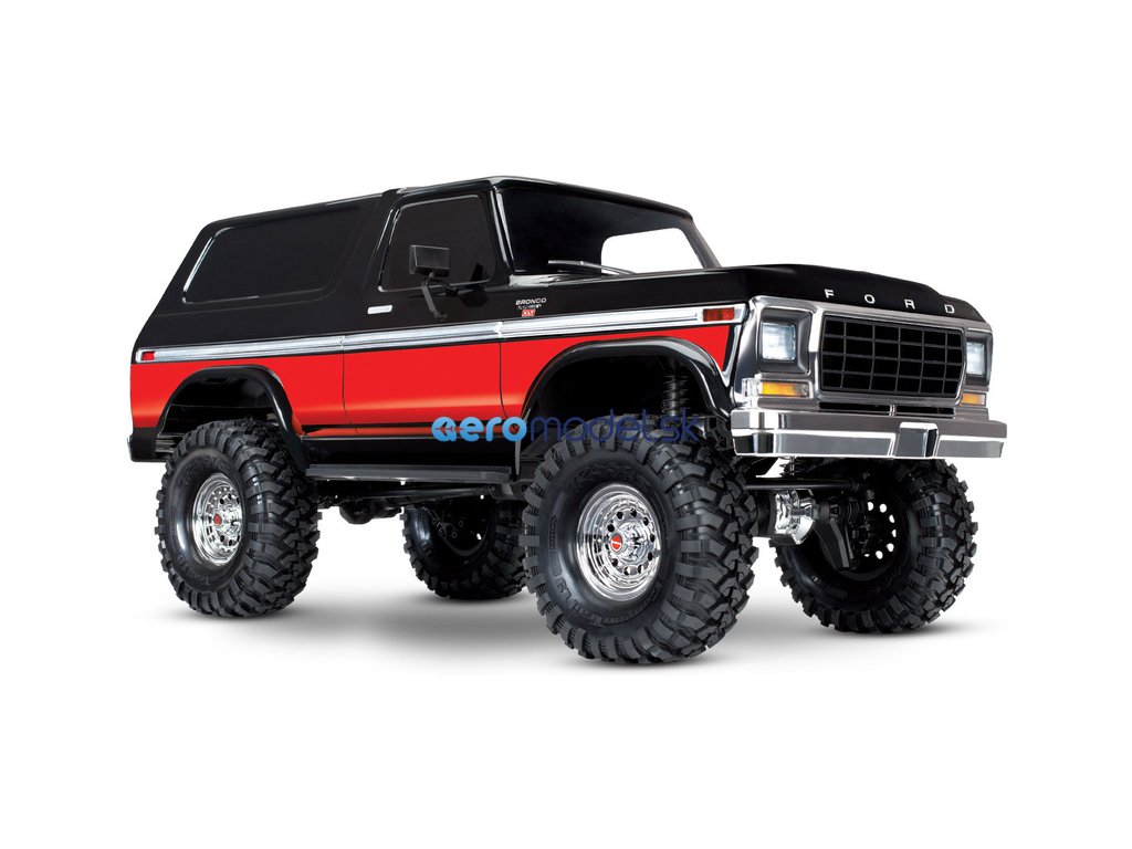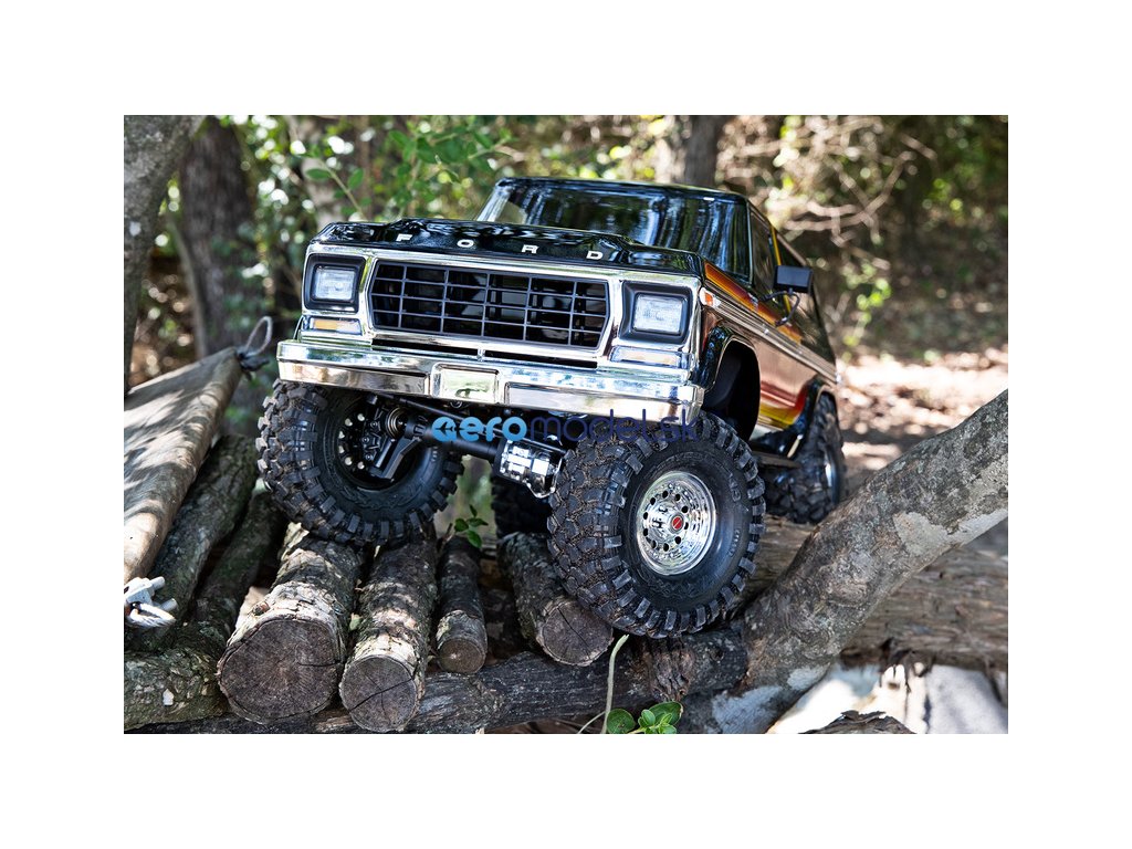 Expediční RC model auta TRX-4 Ford Bronco 1979 je replikou skutečného vozu v měřítku 1:10. Nově s detailní bezsponkovou karoserií s klasickým vzhledem ze 70-80 let. Autentická chromová kola, nárazníky, postranní lišty, zrcátka a mřížka chladiče, to vše dodává Fordu Bronco na autentičnosti. Výborné šasi TRX-4 s náhonem 4x4, dálkově řízenou 2-rychlostní převodovkou, uzávěrkami diferenciálů a portálovými nápravami.