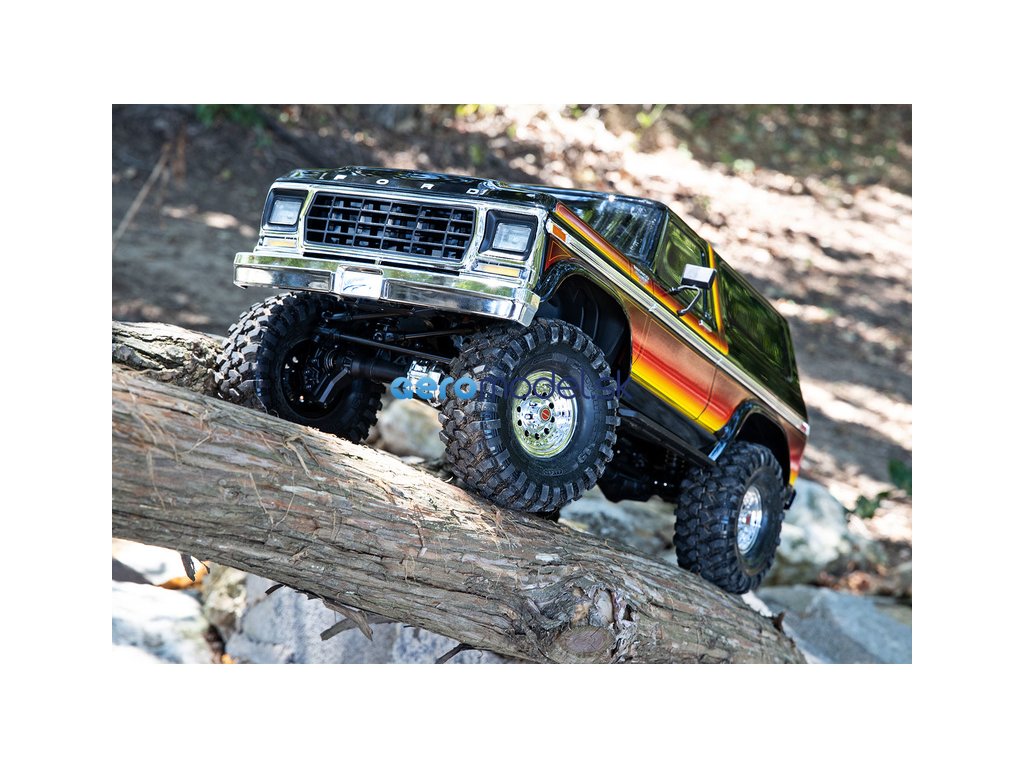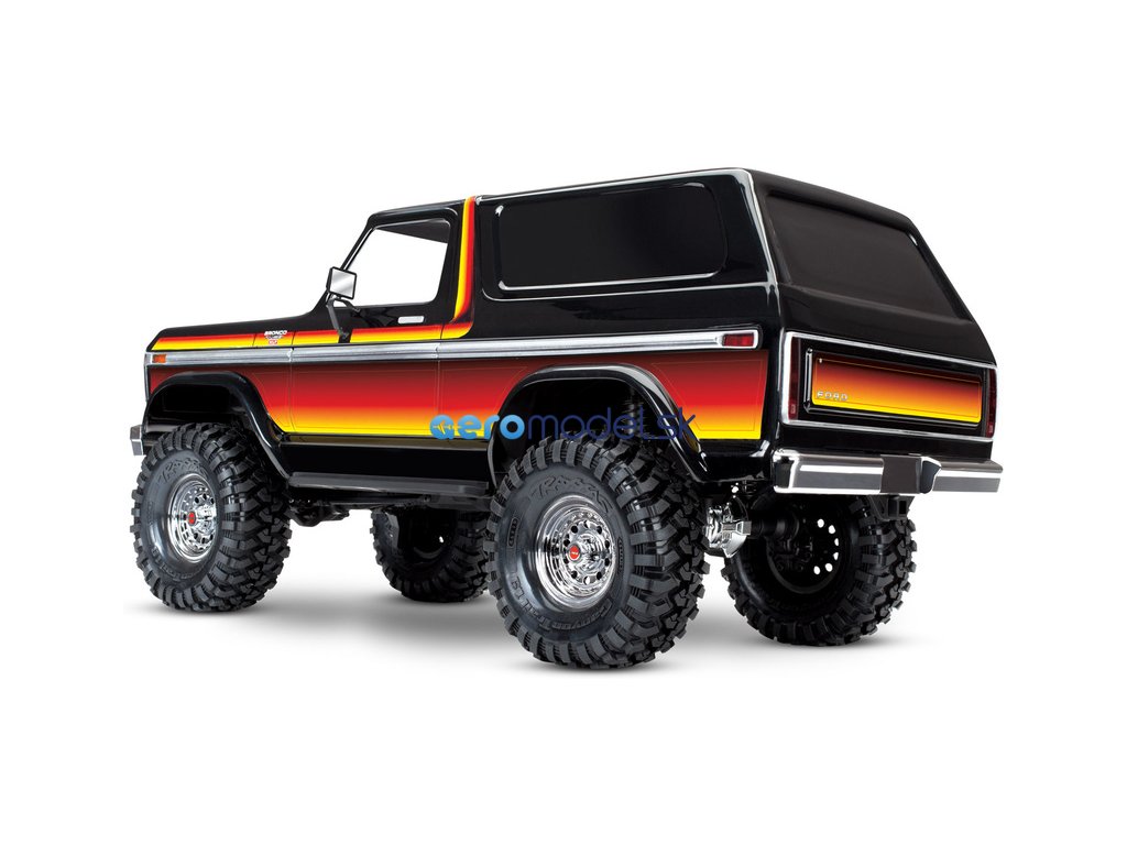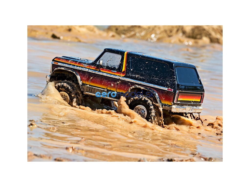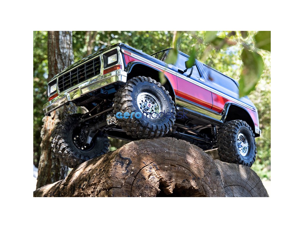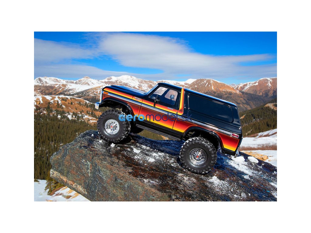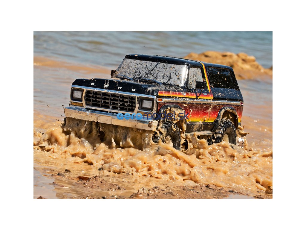 Expediční RC model auta TRX-4 Ford Bronco 1979 je replikou skutečného vozu v měřítku 1:10. Nově s detailní bezsponkovou karoserií s klasickým vzhledem ze 70-80 let. Autentická chromová kola, nárazníky, postranní lišty, zrcátka a mřížka chladiče, to vše dodává Fordu Bronco na autentičnosti. Výborné šasi TRX-4 s náhonem 4x4, dálkově řízenou 2-rychlostní převodovkou, uzávěrkami diferenciálů a portálovými nápravami.