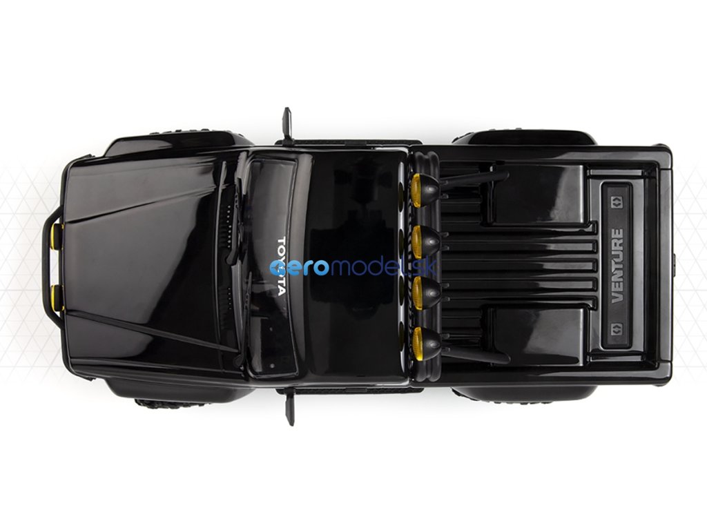 Karoserie je předlakovaná a obsahuje také čirá okna a maketové doplňky, jako jsou znaky Toyota, přední mřížka, kliky dveří, stěrače, funkční zrcátka, a navíc trubkové nárazníky a ochranná klec pro vysokou úroveň realismu. Namontovaná sada LED světel ještě více zvyšuje autenticitu a dodává modelu Venture18 další vrstvu detailů, která skutečně vynikne. Světla lze navíc ovládat přímo z vysílače.
