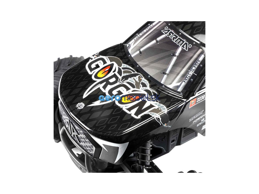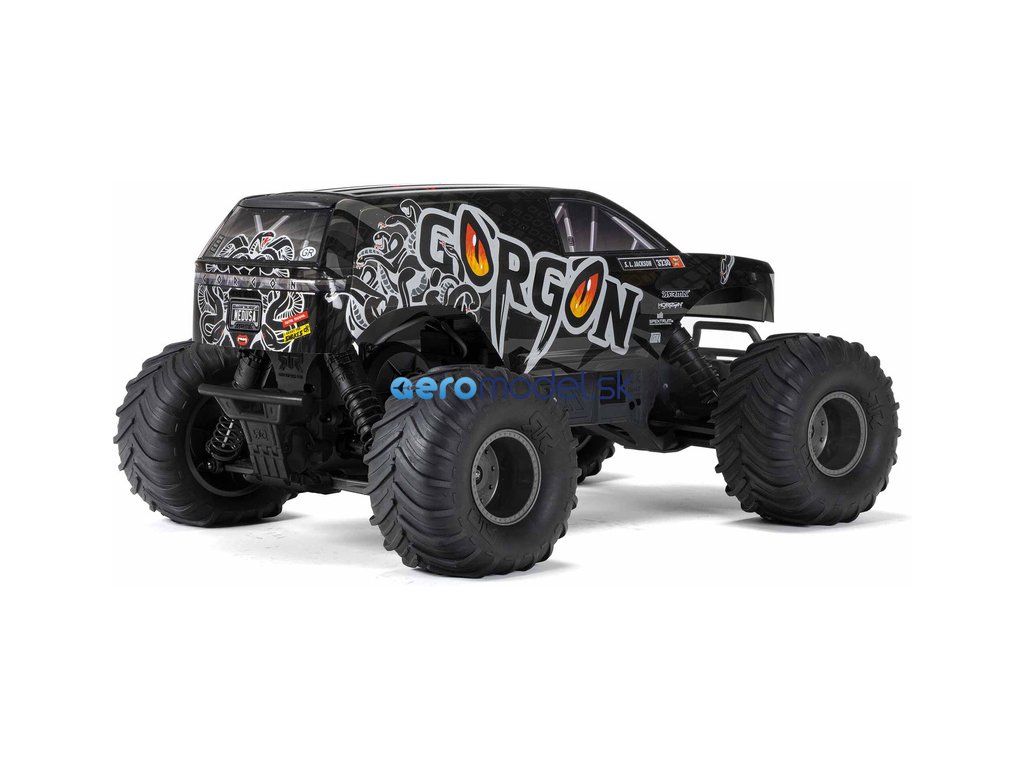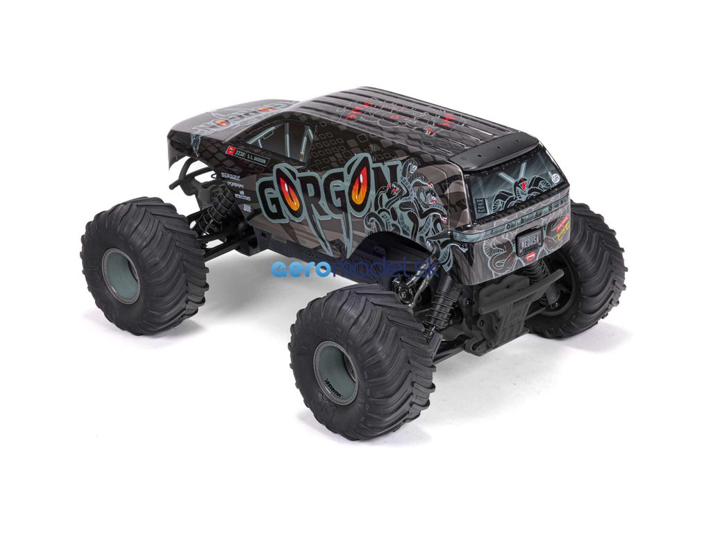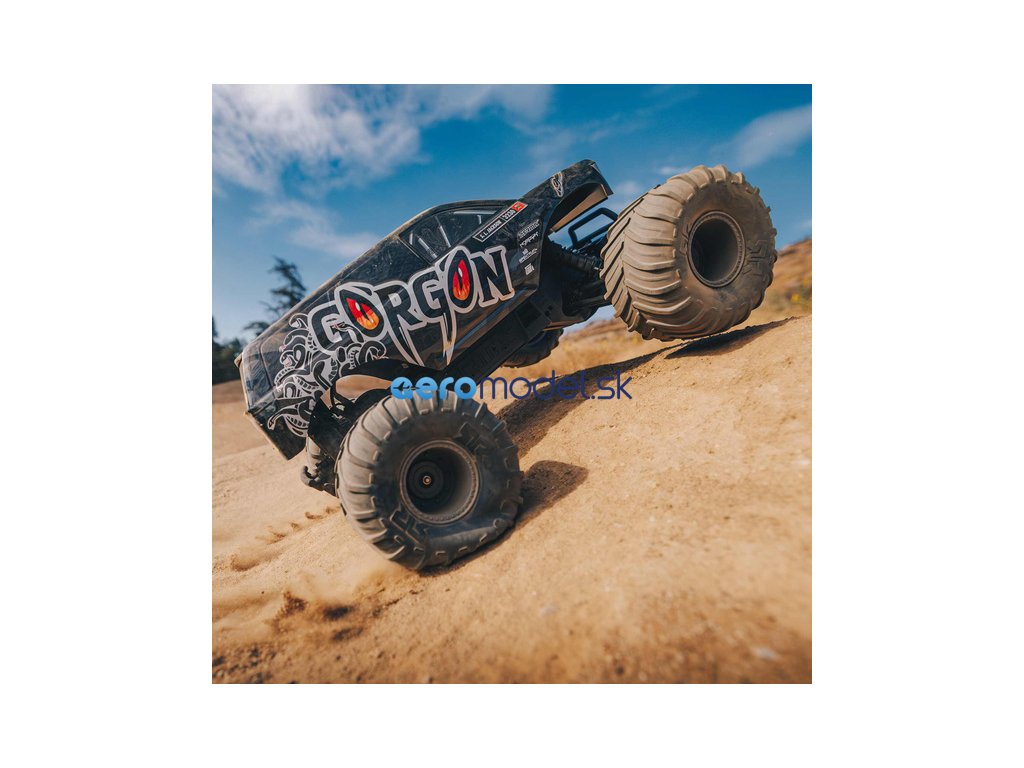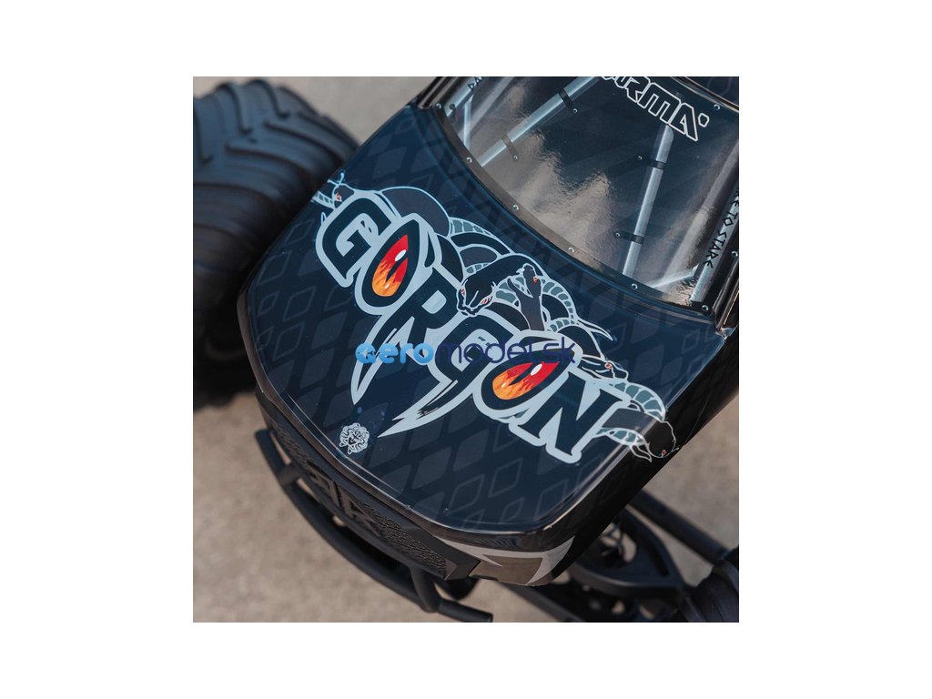 Ihned po vybalení přitáhne Gorgon vaši pozornost, díky originálnímu vzhledu. Karoserie je z výroby dokončena ve velmi atraktivním moderním stylu a je barevně sladěna s jednotlivými díly šasi, jako jsou pružiny, přihrádka na baterii, kluzné desky a nárazníky. Osvědčená technologie ARRMA má díky kompozitnímu šasi vysokou odolnost. Nezávislé zavěšení, olejové tlumiče a nastavitelná světlá výška zajišťují komfortní jízdu. Pro nezastavitelnou trakci přenáší 2WD převodovka výkon ze stejnosměrného motoru MEGA 550 do masivních pneumatik dBoots ® Chevron o rozměru 130mm, nalepených na nylonových discích 57mm. Použité kovové převody jsou dostatečně odolné i pro případný upgrade na střídavý pohon.