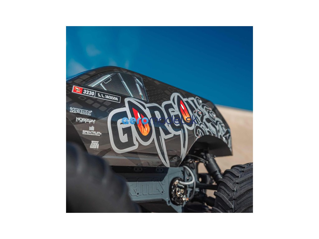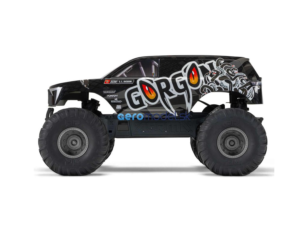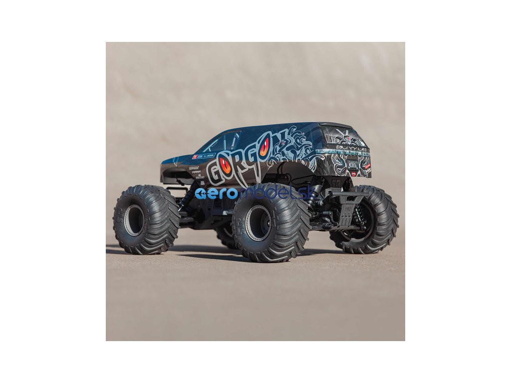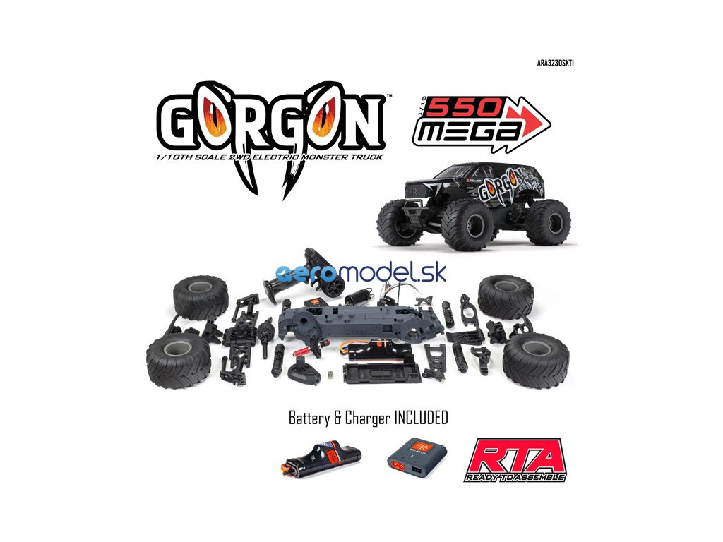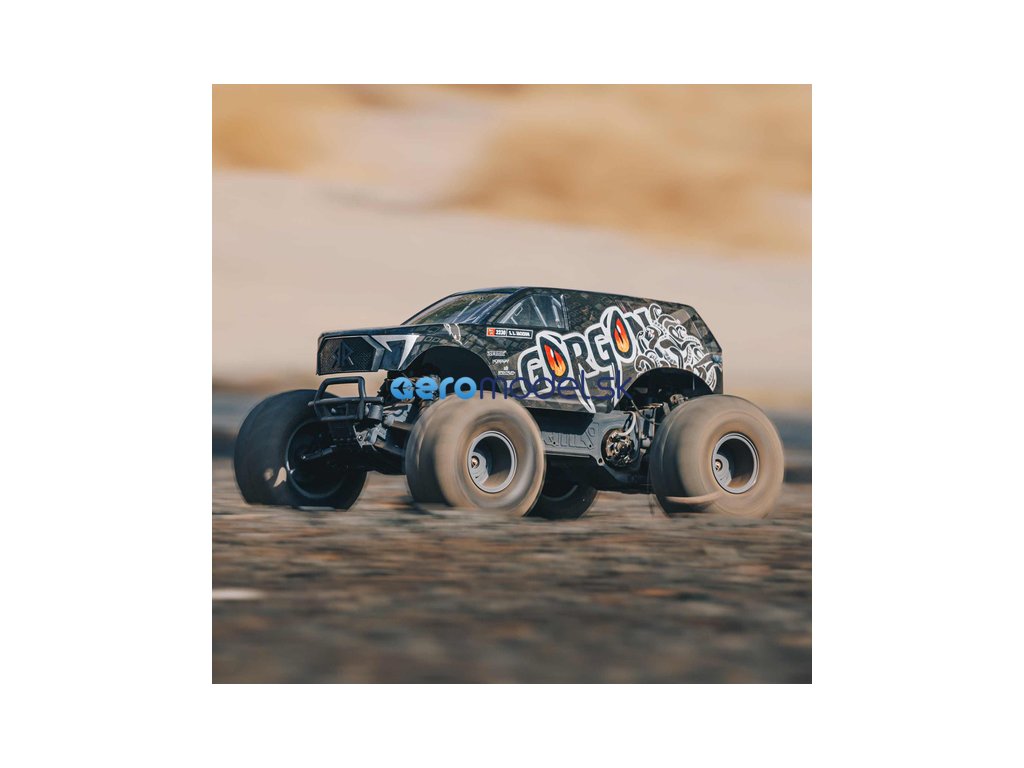 Ihned po vybalení přitáhne Gorgon vaši pozornost, díky originálnímu vzhledu. Karoserie je z výroby dokončena ve velmi atraktivním moderním stylu a je barevně sladěna s jednotlivými díly šasi, jako jsou pružiny, přihrádka na baterii, kluzné desky a nárazníky. Osvědčená technologie ARRMA má díky kompozitnímu šasi vysokou odolnost. Nezávislé zavěšení, olejové tlumiče a nastavitelná světlá výška zajišťují komfortní jízdu. Pro nezastavitelnou trakci přenáší 2WD převodovka výkon ze stejnosměrného motoru MEGA 550 do masivních pneumatik dBoots ® Chevron o rozměru 130mm, nalepených na nylonových discích 57mm. Použité kovové převody jsou dostatečně odolné i pro případný upgrade na střídavý pohon.