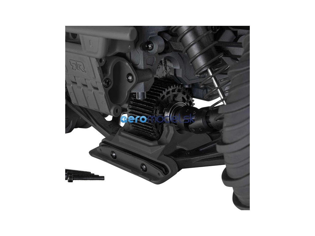 Převodovka modelu ARRMA GORGON MT, zajišťuje přenos výkonu ze stejnosměrného motoru MEGA 550 14T na zadní kola. Převodovka je dostatečně dimenzovaná, aby odolala i střídavému pohonu.