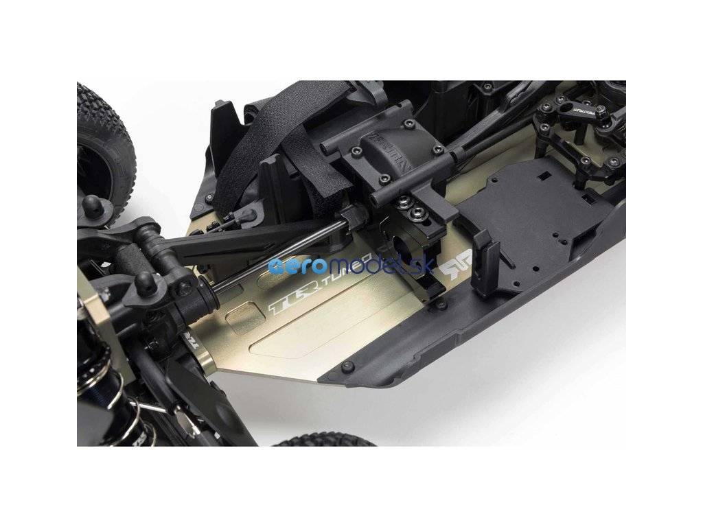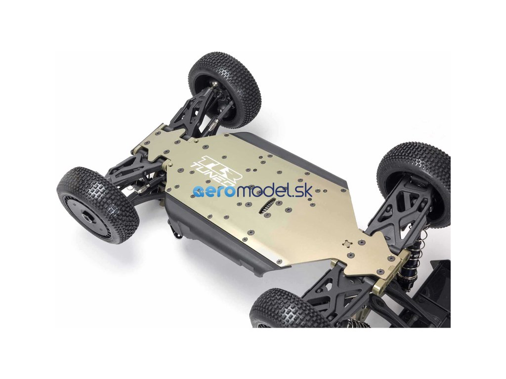 Odolné hliníkové komponenty TLR® Tuned zahŕňajú podvozkovú dosku, hriadeľ riadenia, nastaviteľné horné a dolné závesy, tlmiče a prednú a zadnú vežu. Na všetkých je laserom vyleptané logo TLR®. Podvozok má tiež hrubé kompozitné bočné lišty a predné a zadné výstuhy. Nastaviteľné tlmiče s olejovou náplňou majú opracované kužeľovité piesty a rozpery Extreme Bash (EXB).