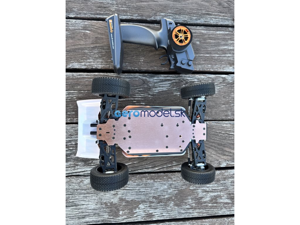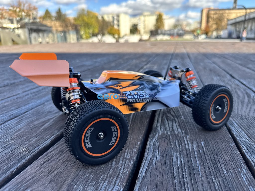 Nekompromisné RC bugy Z06 EVOLUTION 4WD 1:14 pracuje na 2,4 GHz s plne proporcionálnym ovládaním a profi podvozkom. Táto "parkúrová" bugyna je ideálnym parťákom do streetu, kde sa najlepšie cíti na rampách, dirt dráhach a pod. Ako už názov napovedá bugy má pohon všetkých 4 kolies, kedy využíva veľmi silný motor typ 550, ktorý dokáže vyvinúť rýchlosť až 60 km/h . Podvozok má vážne ultimátne vlastnosti, kde základom je celohliníkový podvozok, priečne závesy a olejové tlmiče z toho istého materiálu. Ďalej sú vo výbave kovové hnacie hriadele, zapuzdrená prevodovka a na prednej náprave CVD poloosi zamedzujúce vypadnutiu pri prípadnej nehode. Neoddeliteľnou súčasťou tohto extrémne odolného podvozku je aj systém Servo Saver, vďaka ktorému sa nemusíte báť poškodenia serva pri nehode. Gumové pneumatiky Ultra-Grip a karosérie z kvalitného plastu tak už sú len pomyselnou čerešničkou na torte.