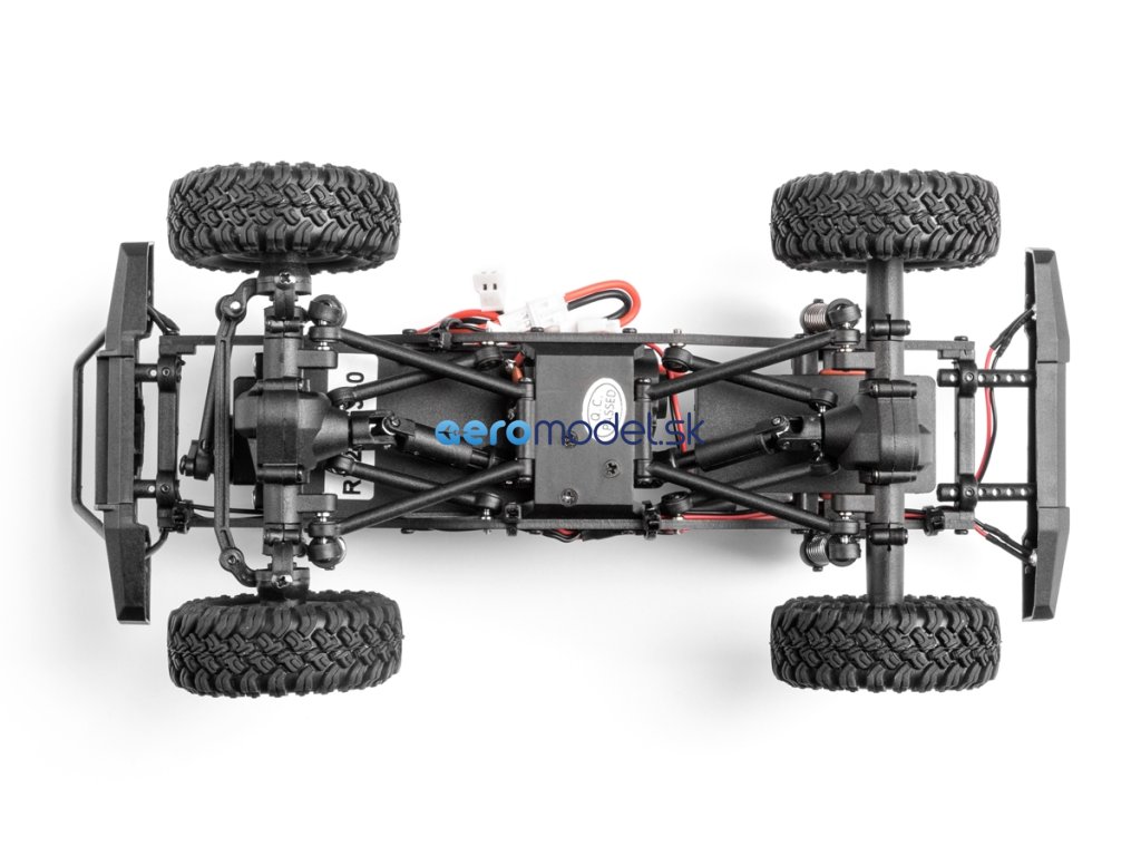 Pevný kovový rám spolu s 4bodovým zavěšením náprav a měkkými tlumiči poskytuje dostatečnou světlou výšku, nájezdové úhly a artikulaci pro překonávání náročných překážek. Stálý náhon všech kol, uzavřené diferenciály a měkké pneumatiky s hlubokým vzorkem vždy zaručí dostatek trakce.