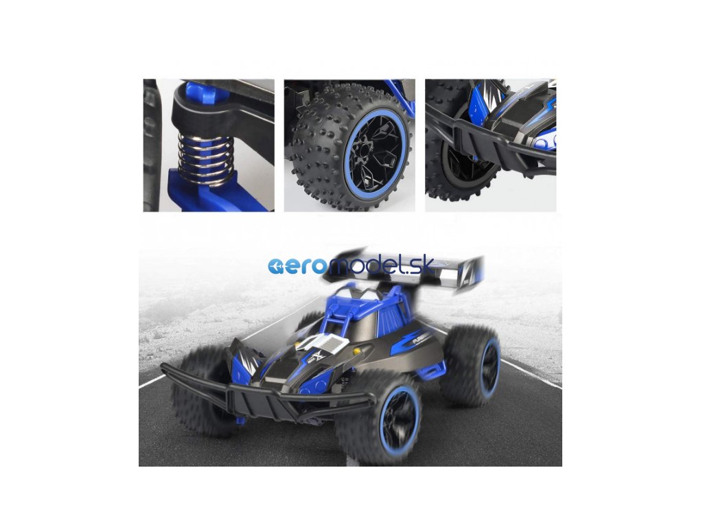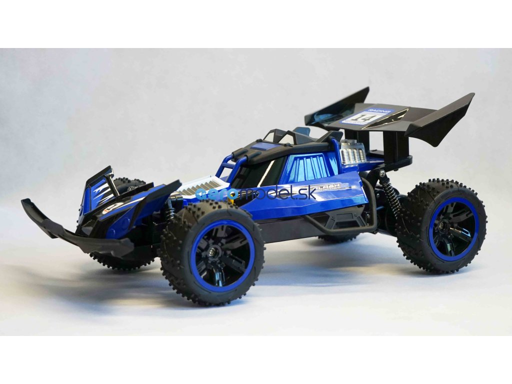 Rýchle a obratné auto - kombinácia terénneho vozidla a cestného automobilu - starší a väčší brat toho istého auta, ktorý sa vyskytuje v mierke 1:10. Tento model je určený pre fanúšikov ťažších zariadení, pretože je k dispozícii v mierke 1:10. Vozidlo má veľmi malý elektromotor, ktorý vás svojou silou prekvapí. Maximálna rýchlosť je až 12 km / h. Najlepšia voľba pre začiatočníkov, ktorí chcú začať hrať s RC modelmi. Je číslo jedna z hľadiska obratnosti. Karoséria je vpredu chránená veľkým nárazníkom, ktorý ľahko prijíma svetlomety. Celý pohonný systém je osvedčeným dizajnom, ktorý možno vidieť v populárnych Land Busters. Jediným rozdielom je, že tentoraz má Flash pohon dvoch kolies. Chcete "lietať" bokom po piesku? Žiadny problém! Alebo možno budete chcieť šplhať po strmých kopcoch na ťažkú zem? Nič jednoduchšie. Zúbkované pneumatiky spôsobujú, že auto sa doslova drží na ceste v zložitejšom teréne alebo sa posúva po mierne rovnejšom povrchu.