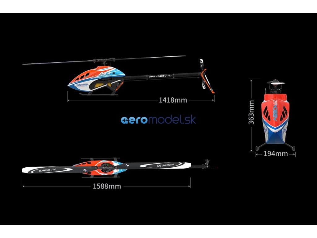 OMP HOBBY M7 je vysokovýkonný vrtulník třídy „700“ konstruovaný tak, aby při instalaci odpovídajícího motoru a elektroniky vyhověl požadavkům pilotů, kteří s velkými vrtulníky teprve začínají, sportovním letcům, maketářům i 3D borcům. Při návrhu M7 byl kladen důraz na minimalizaci setrvačných momentů ve všech třech osách, což spolu se systémem ovládání nosného a vyrovnávacího rotoru s velkým rozsahem výchylek nabízí neuvěřitelnou autoritu řízení a obratnost.