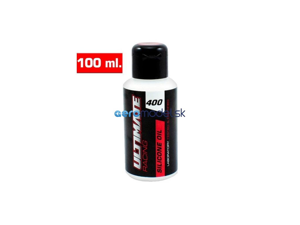 Jedná se o 100 ml lahvičku silikonového oleje Ultimate Racing 400 cSt, který se používá do olejových tlumičů. Tlumičový olej Ultimate Racing je vyroben ze 100% čistého silikonového oleje a v horkém počasí nezřídne a v chladném počasí nezhoustne. Čím vyšší je viskozitní číslo oleje, tím je olej hustší. Silikonový olej Ultimate Racing obsahuje aditiva proti tření, která zajišťuje životnost tlumičů a minimalizují změny viskozity.