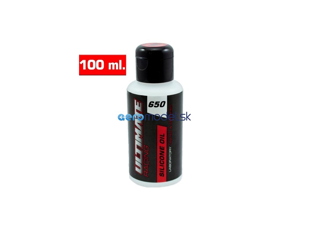 Jedná se o 100 ml lahvičku silikonového oleje Ultimate Racing 650 cSt, který se používá do olejových tlumičů. Tlumičový olej Ultimate Racing je vyroben ze 100% čistého silikonového oleje a v horkém počasí nezřídne a v chladném počasí nezhoustne. Čím vyšší je viskozitní číslo oleje, tím je olej hustší. Silikonový olej Ultimate Racing obsahuje aditiva proti tření, která zajišťuje životnost tlumičů a minimalizují změny viskozity.