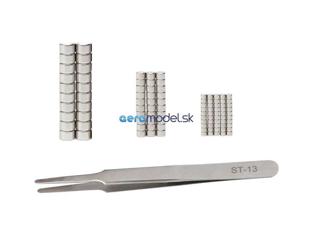 Nemagnetická pinzeta Modelcraft z nehrdzavejúcej ocele so 100 neodymovými magnetmi rôznych veľkostí. Túto sadu možno použiť pri rôznych výrobkoch, plastových modeloch, figúrkach a pod. Vďaka špeciálnej nemagnetickej pinzete je manipulácia s magnetmi veľmi jednoduchá.