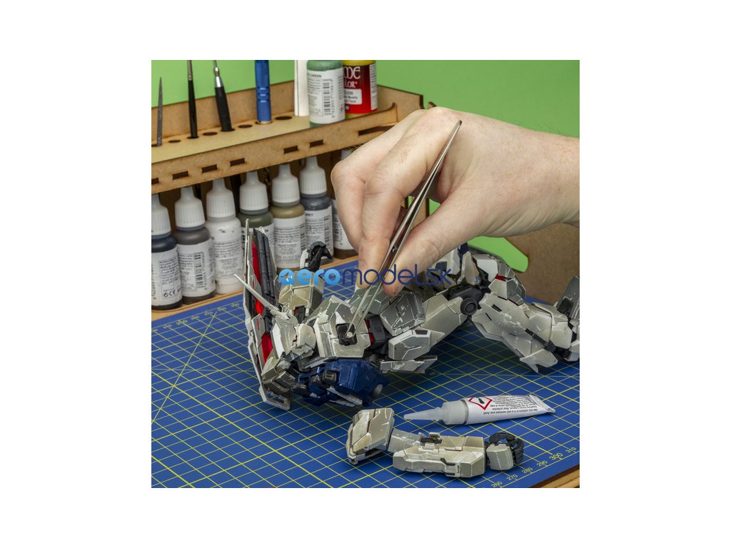Pracovná stanica Modelcraft A3 poskytuje ideálny priestor na prácu s modelom, či už ho máte na stole alebo na kolenách. Nechýbajú ani výrezy na drobné náradie, pracovné pomôcky a fľaštičky s farbou alebo lepidlom.