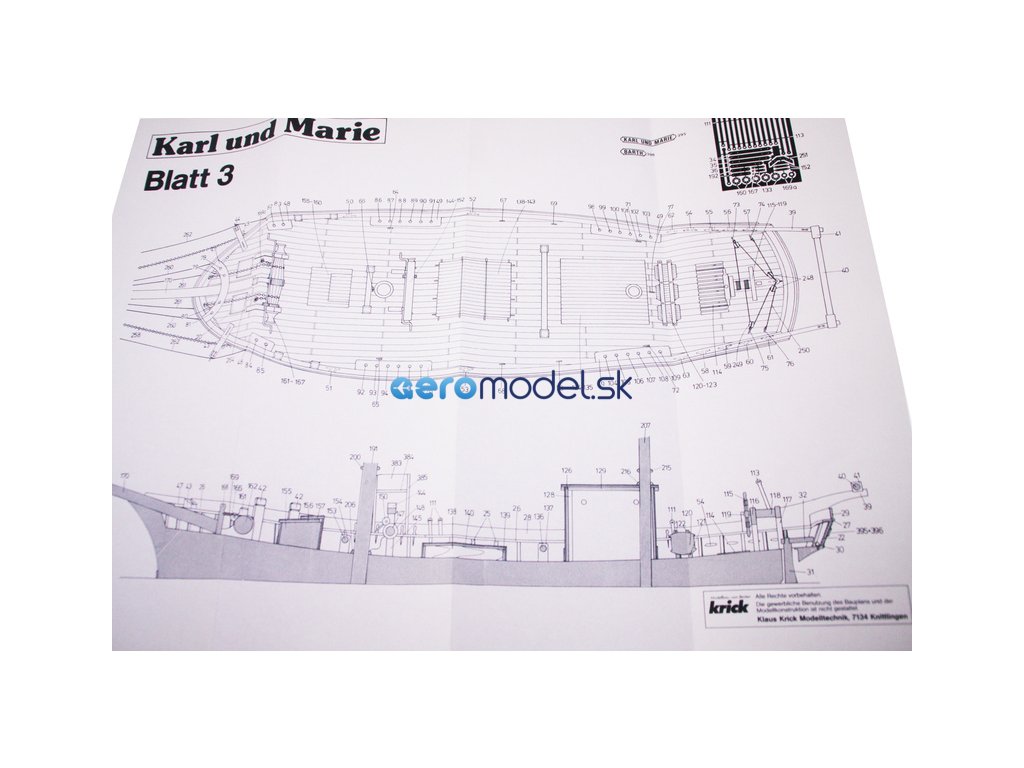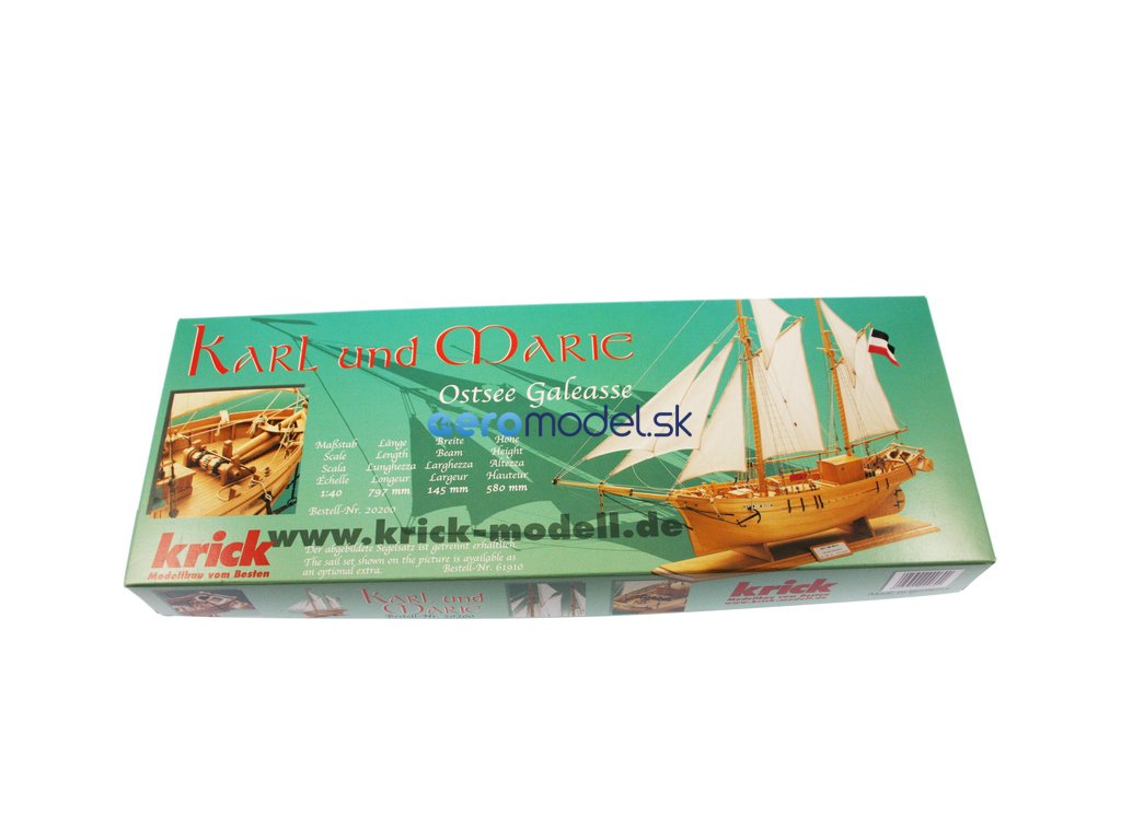 Stavebnice historického modelu lodi pro zručné modeláře. Karl und Marie je typický baltický škuner, který byl v provozu kolem přelomu století. Tyto malé galeony o délce 15 až 20 metrů byly používány především k přepravě zboží podél pobřeží. Typické nákladní lodě měly velký nákladový prostor a dobromyslné chování při plachtění.
