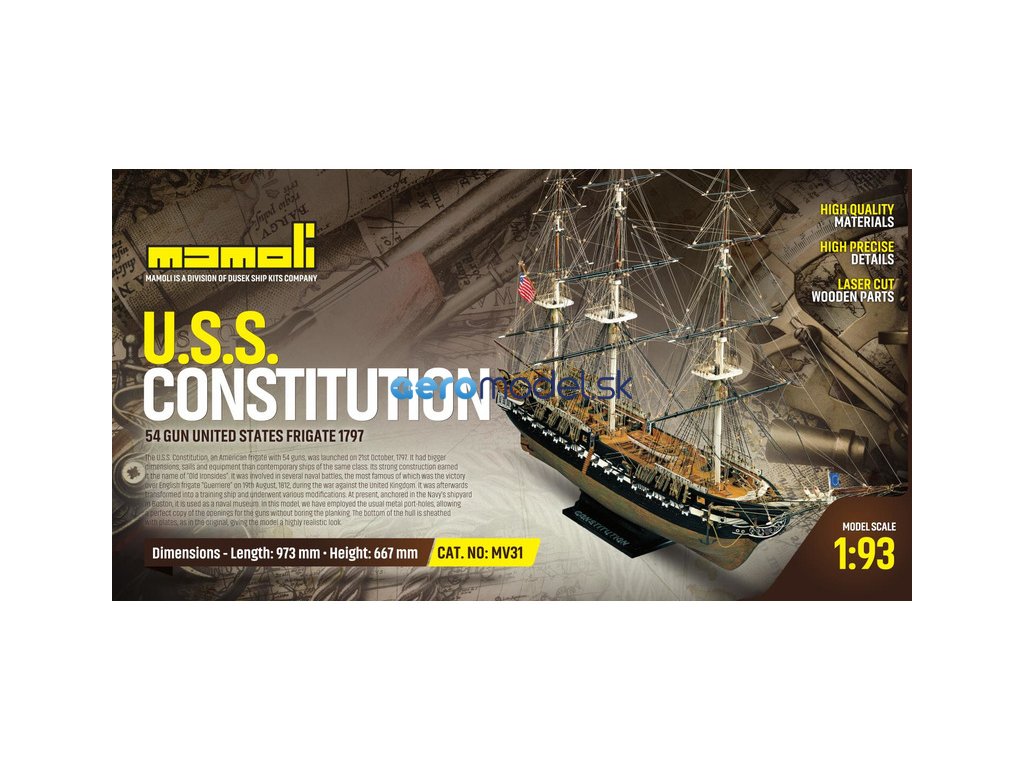 Stavebnice neplovoucího modelu lodi MAMOLI USS Constitution v měřítku 1:93. Délka modelu 973 mm, výška 667 mm. Stavba převážně ze dřeva s drobnými doplňky, součástí je stavební plán. V tomto modelu jsou použita kovová okénka, která umožňují dokonalou repliku otvorů pro zbraně bez vrtání prkna. Spodní část trupu je pokryta kovovými deskami jako originál, což modelu dodává velmi realistický vzhled.