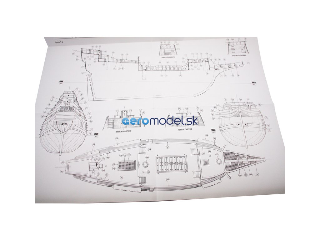 Set obsahuje kompletní sadu výkresové dokumentace modelu v měřítku 1:1 s postupem stavby, na výkrese jsou pečlivě označeny díly a je zde i seznam jednotlivých součástí modelu.