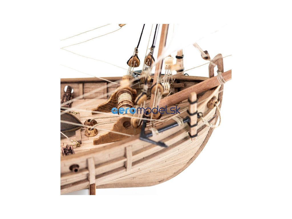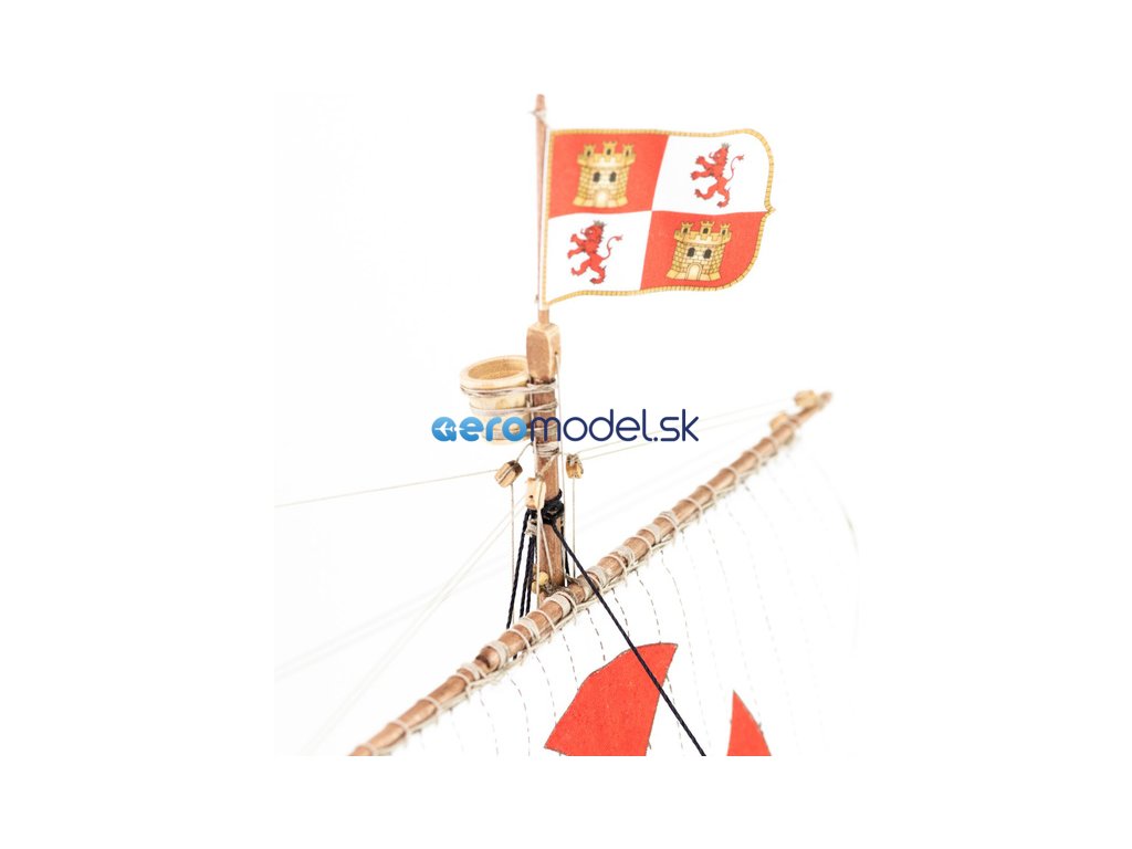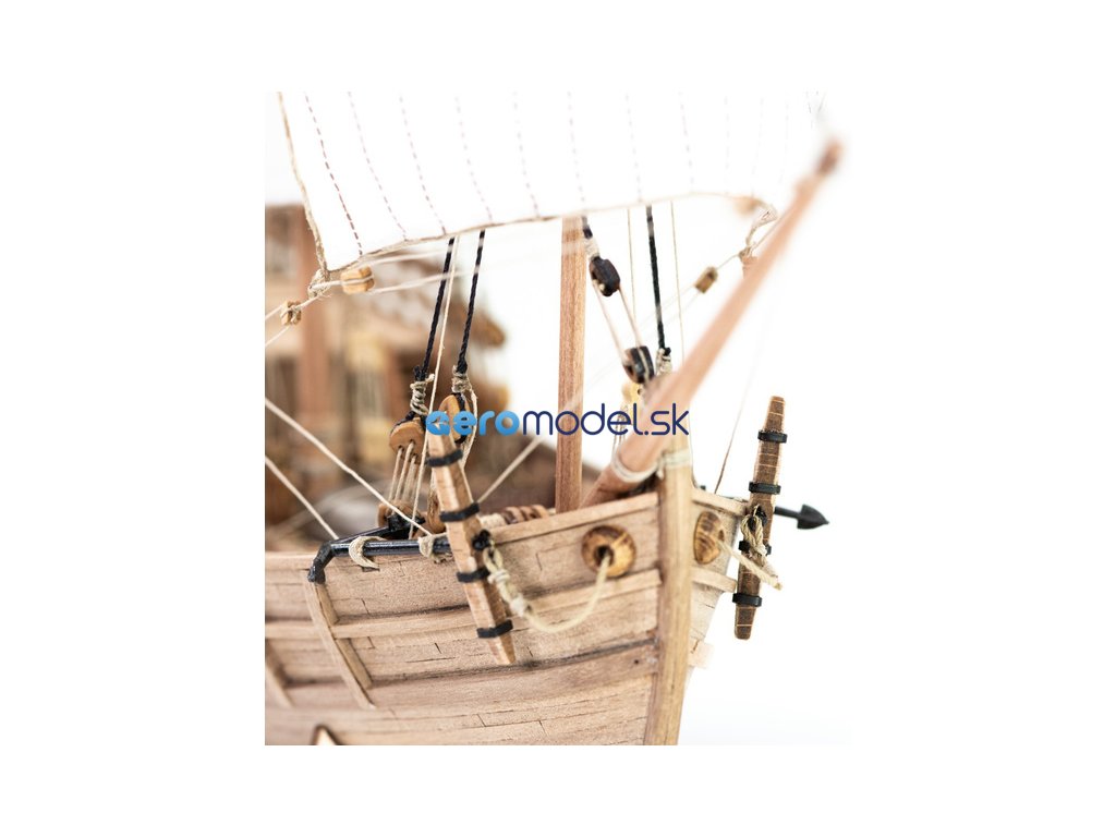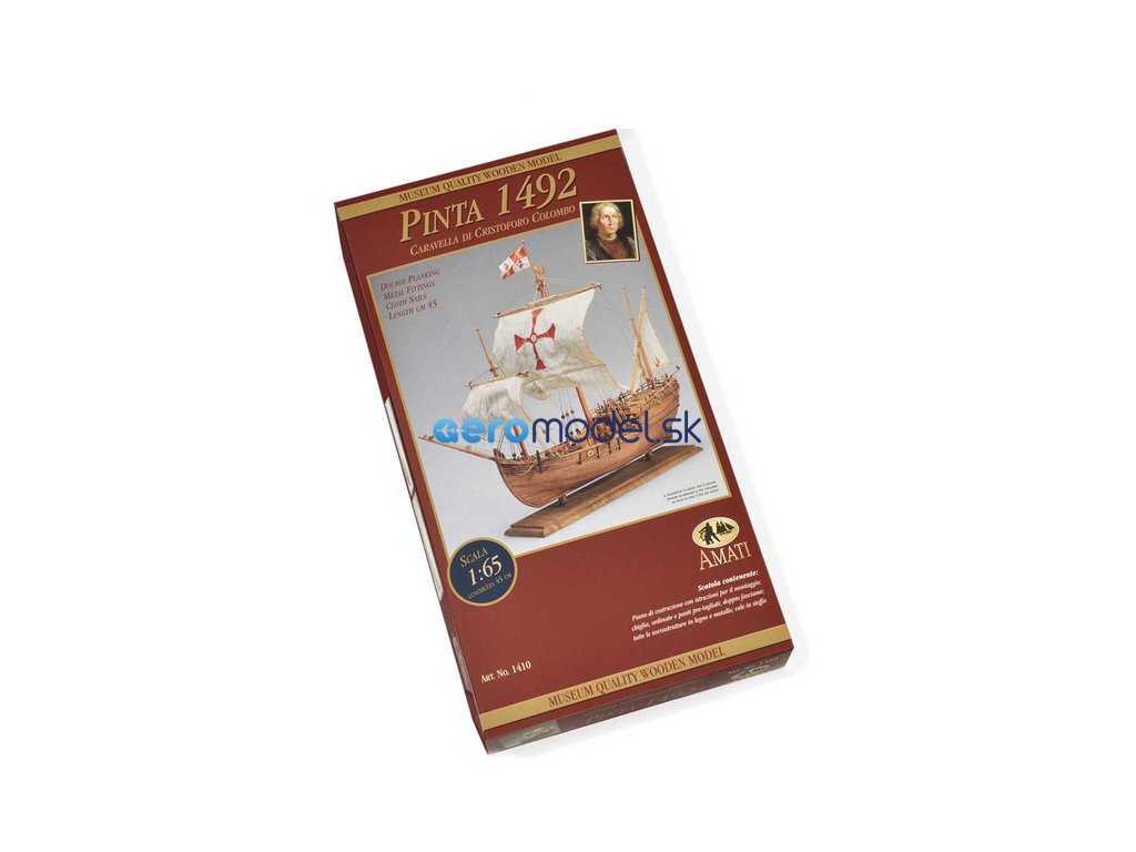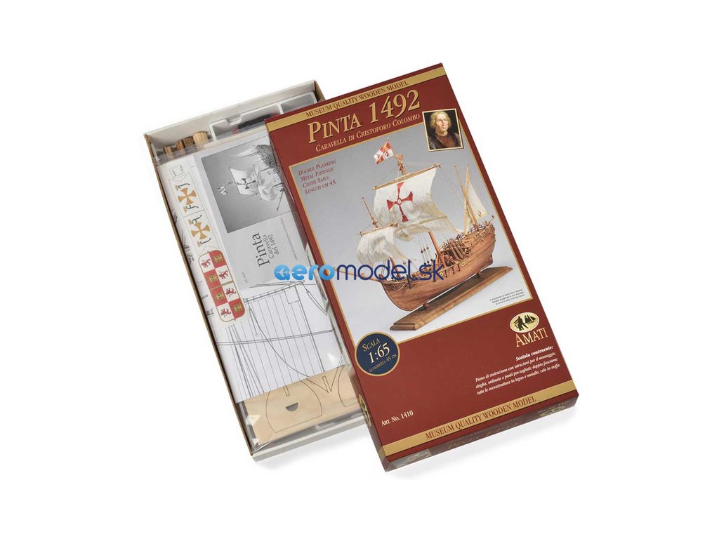 Stavebnice statické makety lodi, AMATI Pinta karavela z roku 1492 v měřítku 1:65 kit. Jedna ze tří lodí, s nimiž Kryštof Kolumbus objevil Ameriku. Tento model je součástí série Columbus společnosti AMATI. Dřevěné díly jako kýl a obšívka jsou řezány laserem, obsahuje plachty, lanoví, stožáry, kování, plány, obrázkový a český návod ke stavbě.