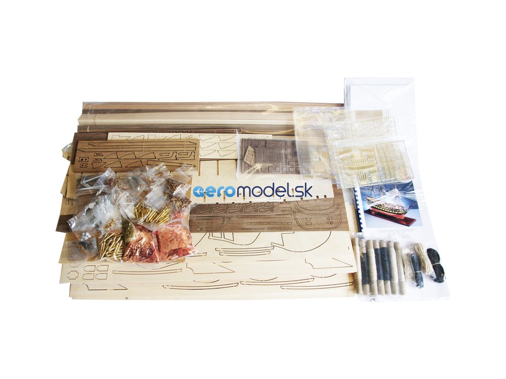 Stavebnice je detailně propracována pro co největší věrnost originálu. Na detailech se podílelo i Britské námořní muzeum, které poskytlo plány a dokumenty originálu. Stavebnice obsahuje obráběné CNC díly ze dřeva včetně 64 mosazných děl, 24-, 18- a 9palcových, černé a přírodní kroucené motouzy, kování z litého kovu nebo leptané mosazi, 9 podrobných listů stavebního plánu, podrobný stavební návod a 2500 měděných tvarovek pro trup pod čárou ponoru.
