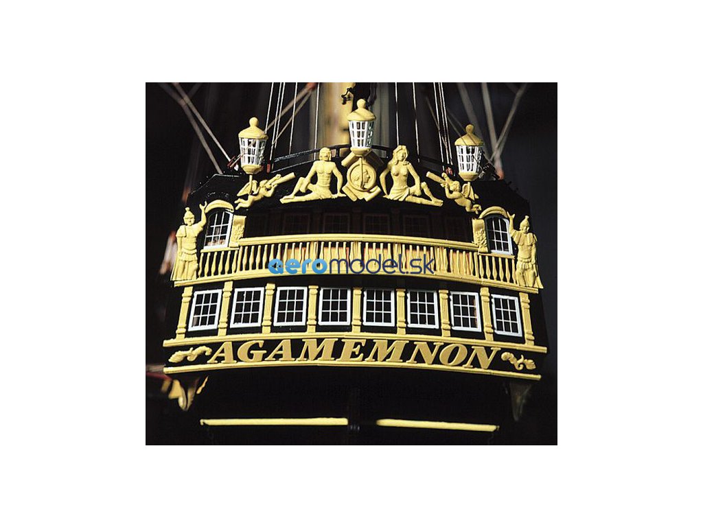 Stavebnice modelu lodi CALDERCRAFT H.M.S. Agamemnon 1793 1:64, která byla jednou z nejznámějších lodí britského královského námořnictva. Byla používána v letech 1793-1796 kapitánem Nelsonem, který ji vždy označoval za svou "oblíbenou loď". Mezi nejdůležitější bitvy patří bitvy Kodaň, Trafalgar a bitva u Santo Dominga.