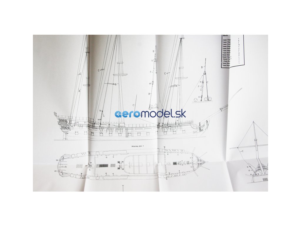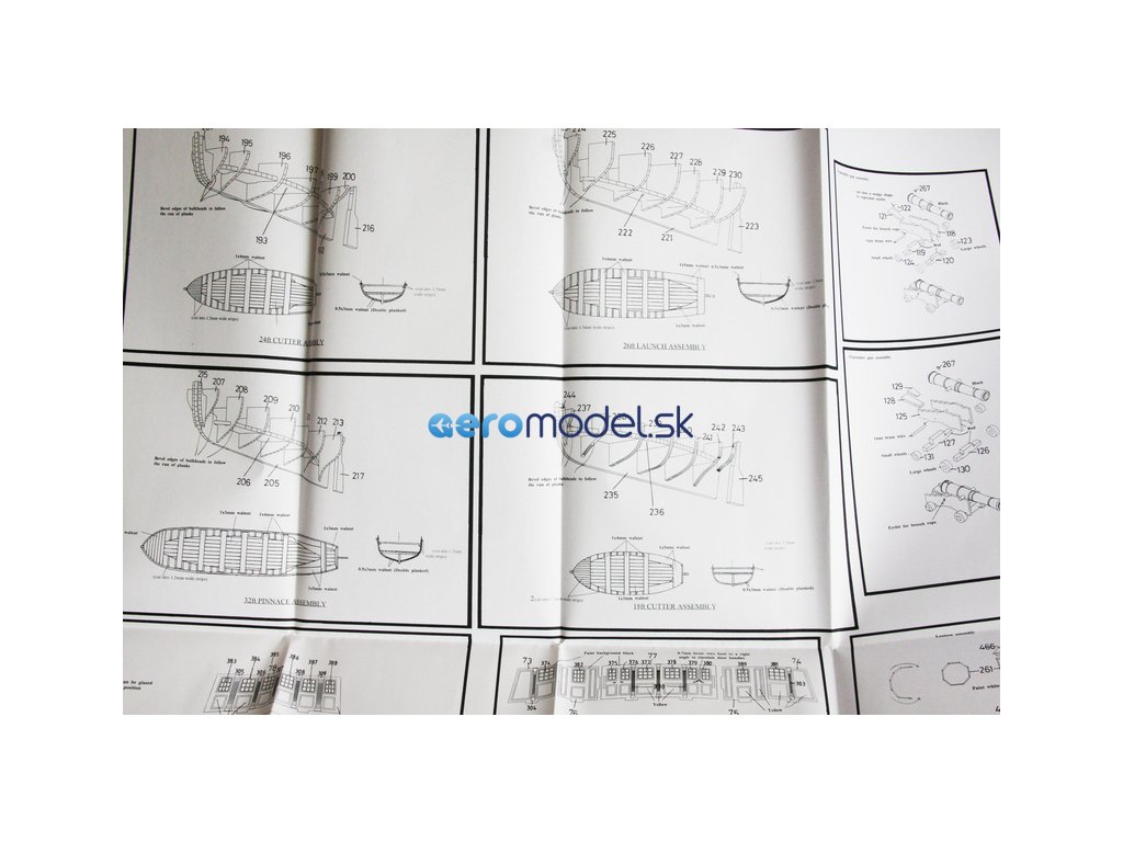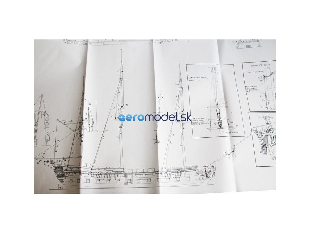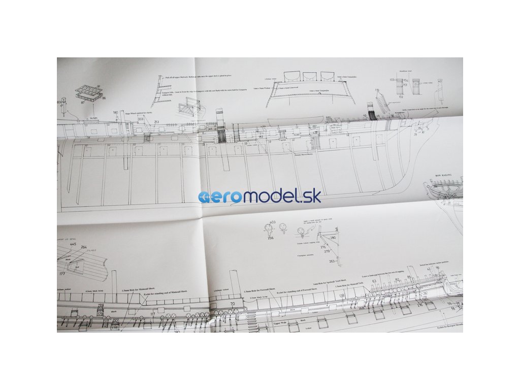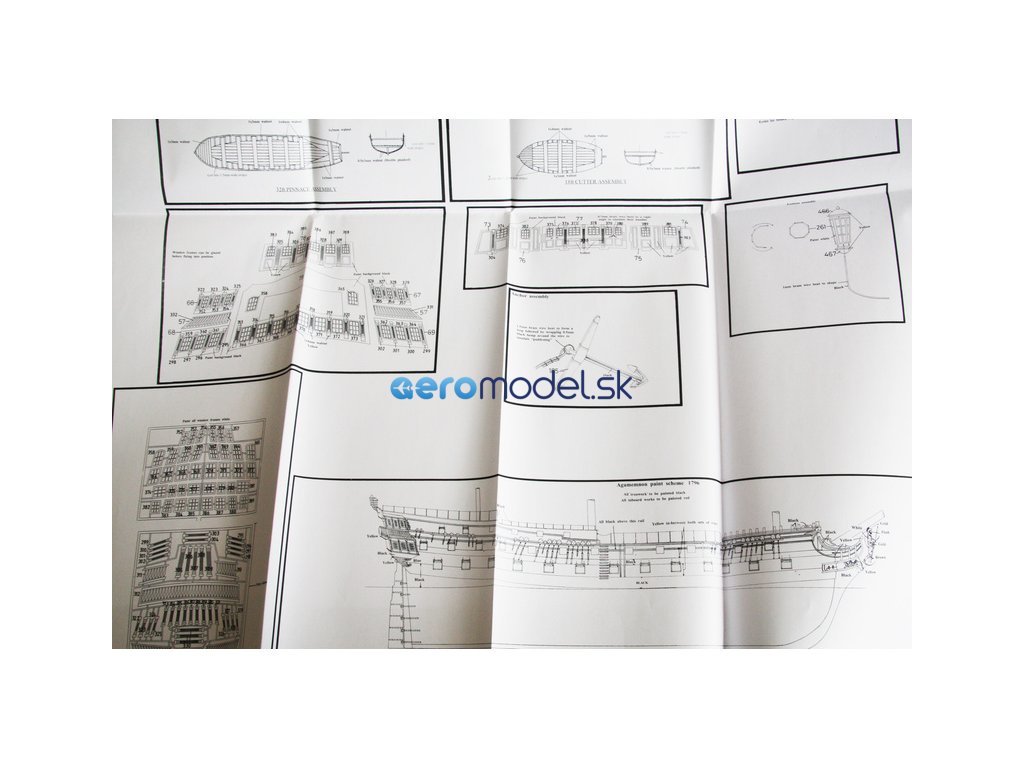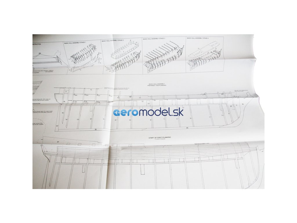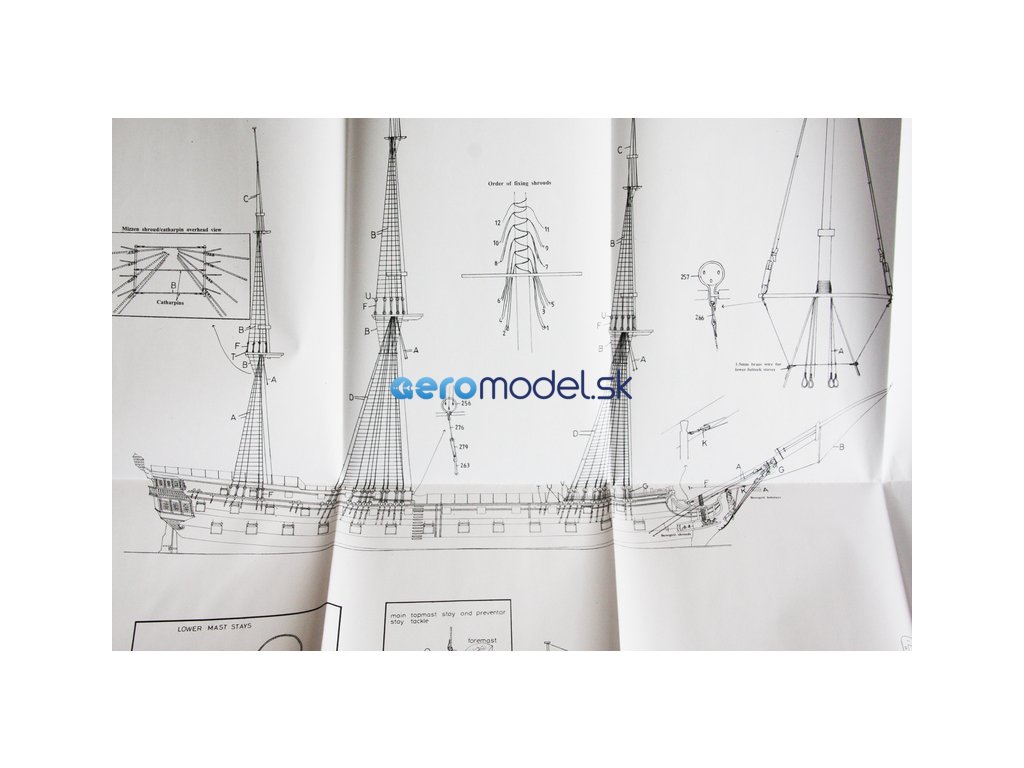 Set obsahuje kompletní sadu výkresové dokumentace modelu v měřítku 1:1 s obrázky jednotlivých detailů. Na výkrese jsou v měřítku nakresleny montážní sestavy, jejich kompletace a to včetně stěžňů a ráhen a způsob vázání lanoví. Vícejazyčný postup stavby rámcově upravuje logické sestavení jednotlivých komponentů.
