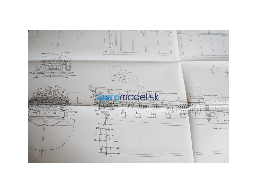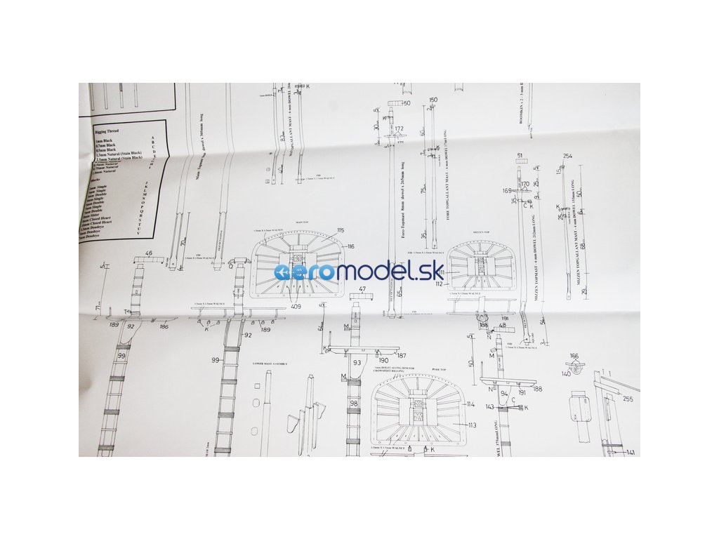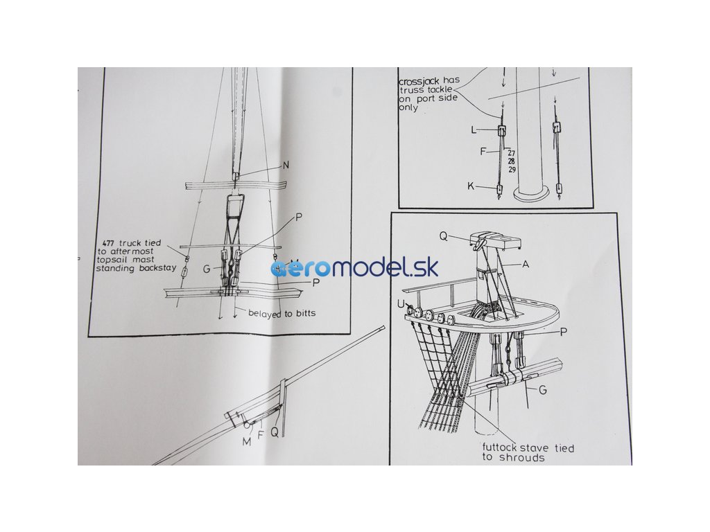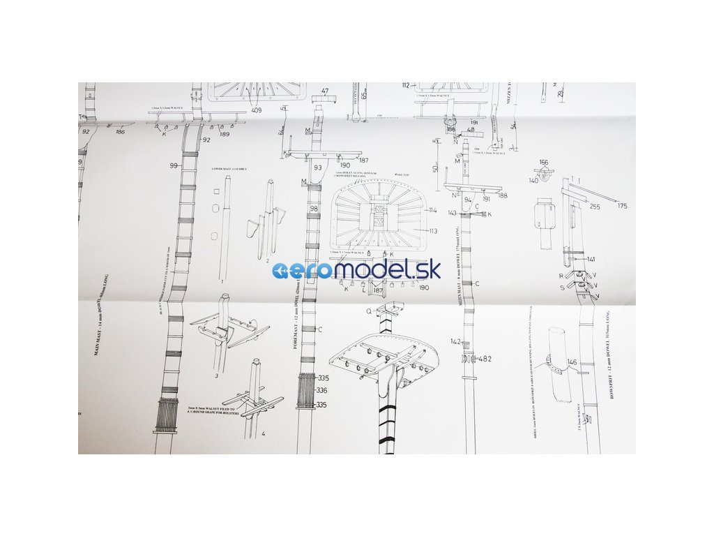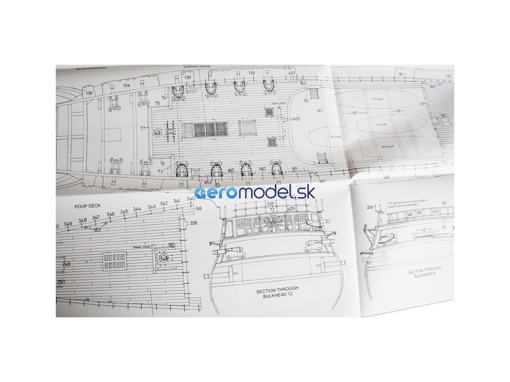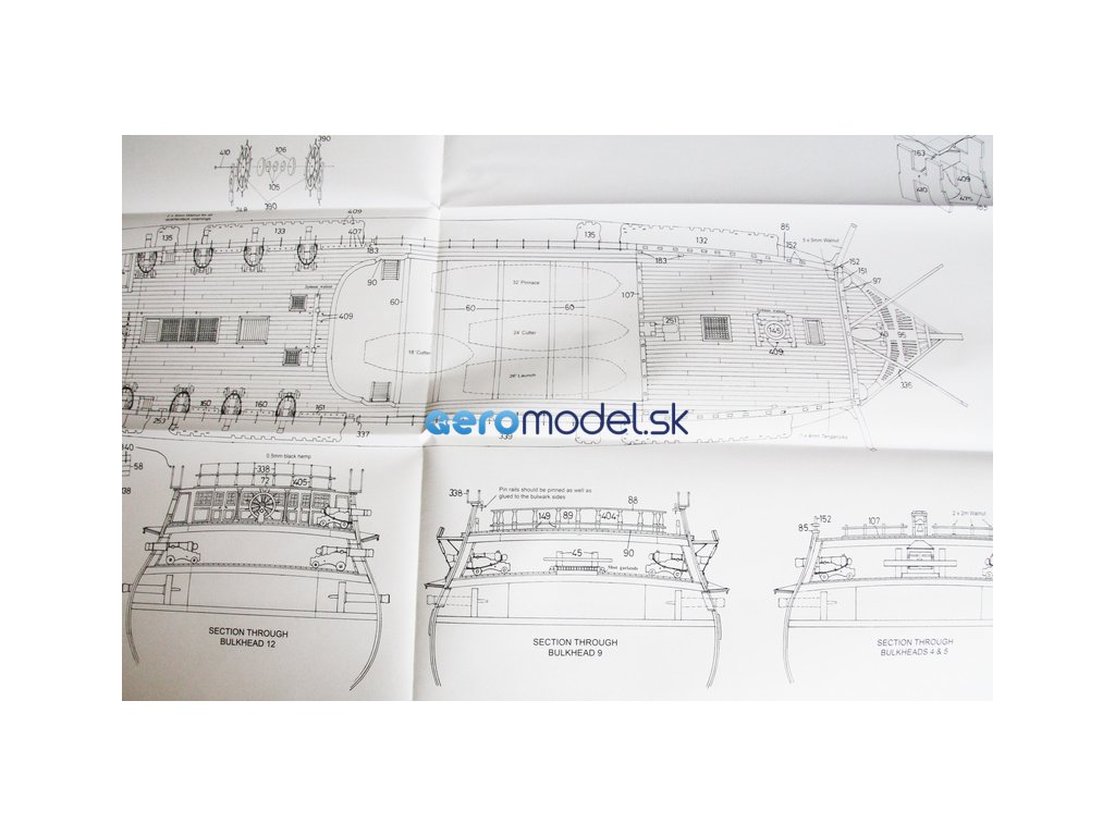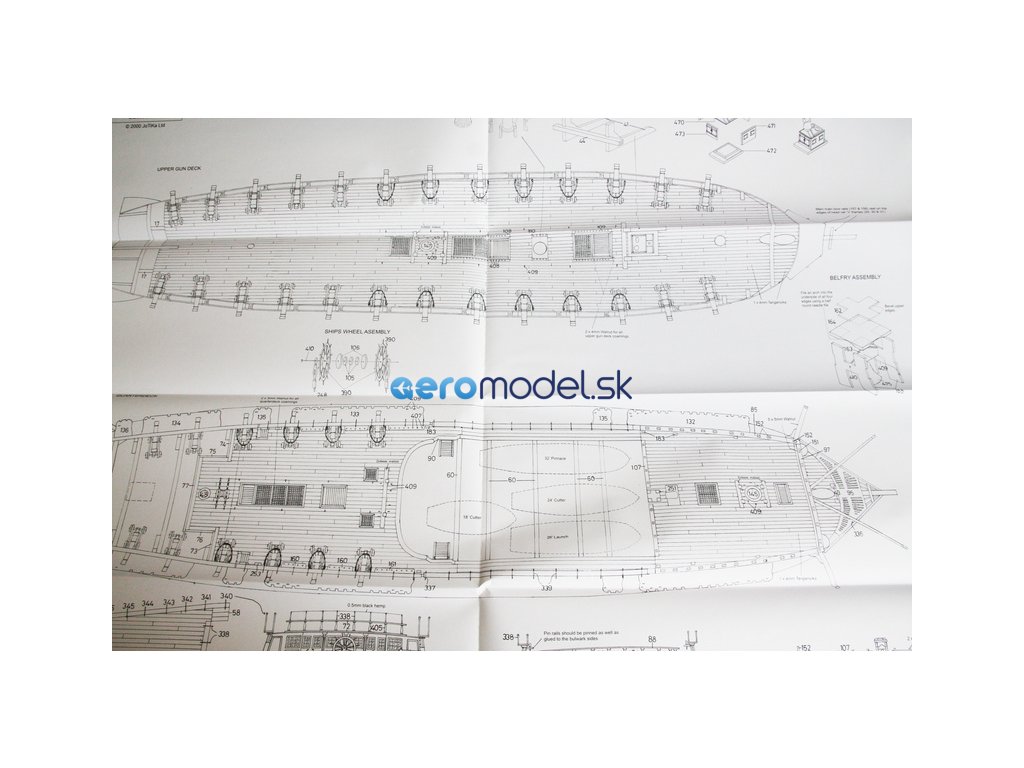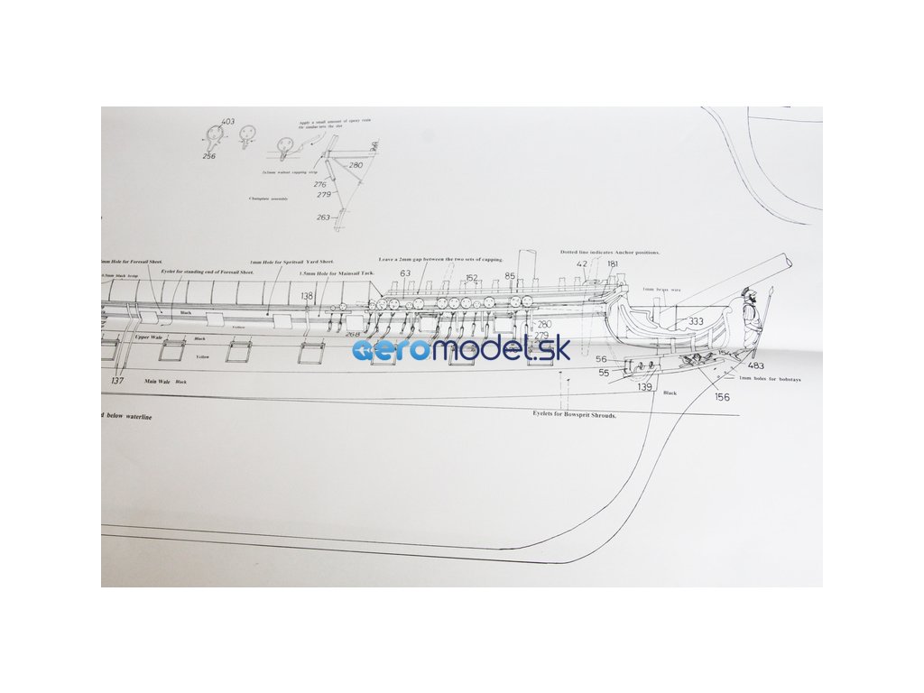 Set obsahuje kompletní sadu výkresové dokumentace modelu v měřítku 1:1 s obrázky jednotlivých detailů. Na výkrese jsou v měřítku nakresleny montážní sestavy, jejich kompletace a to včetně stěžňů a ráhen a způsob vázání lanoví. Vícejazyčný postup stavby rámcově upravuje logické sestavení jednotlivých komponentů.