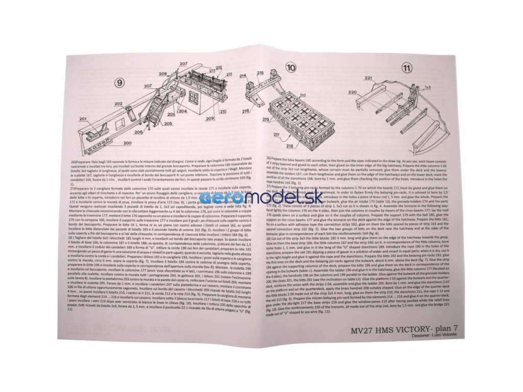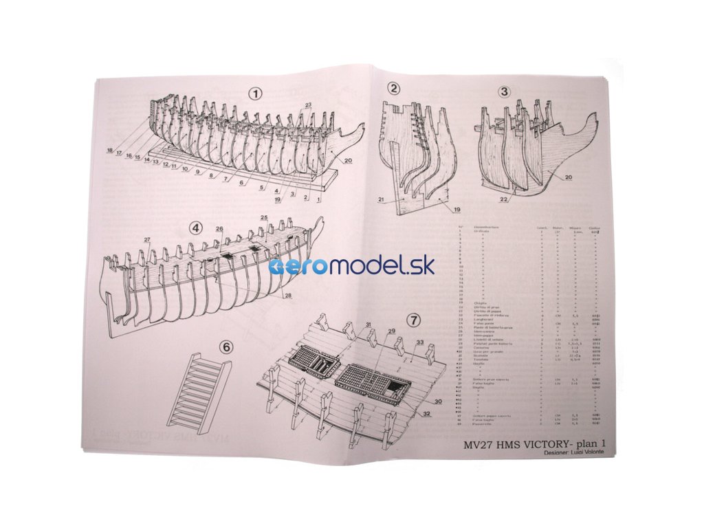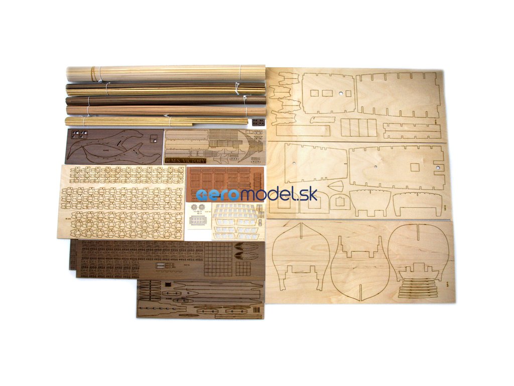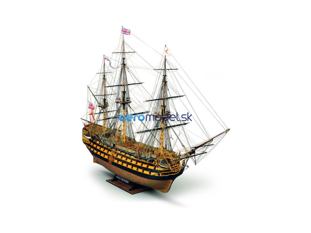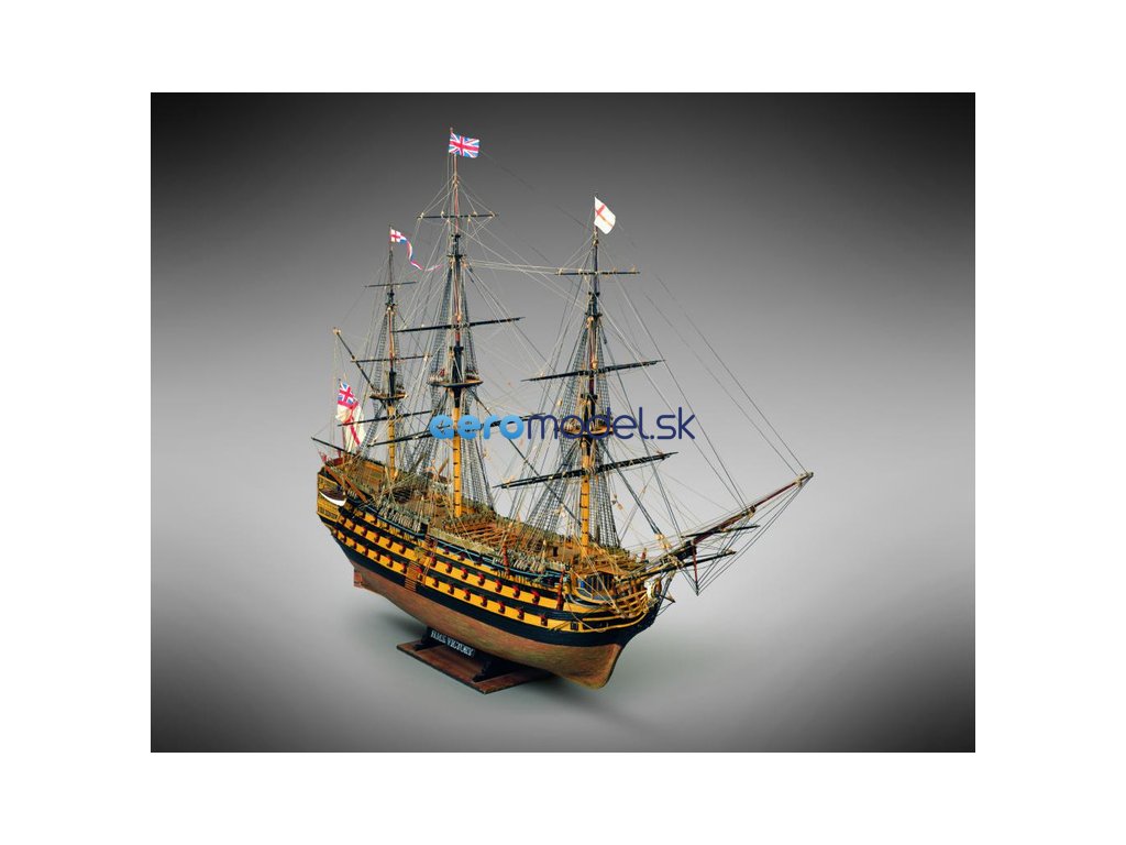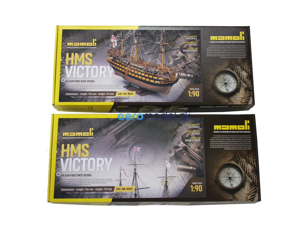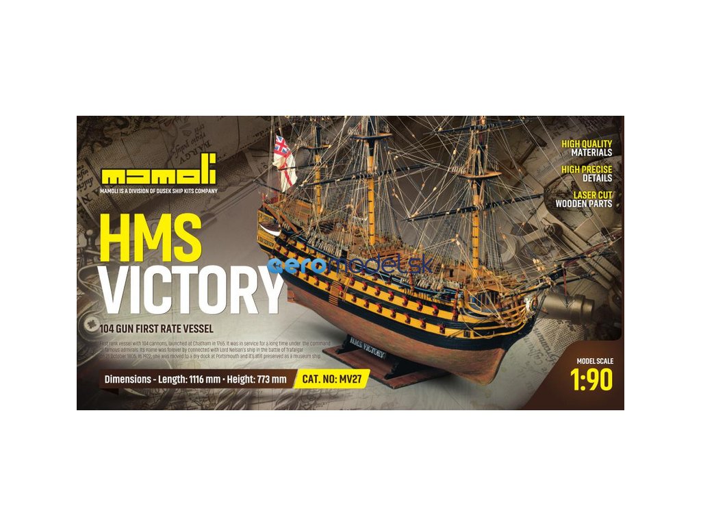 Stavebnice neplovoucího modelu MAMOLI H.M.S. Victory v měřítku 1:90 z roku 1765. Stala se slavnou, když se 21. října 1805 zúčastnila jako vlajková loď admirála Nelsona v bitvě u Trafalgaru, ve které Angličané porazili francouzsko-španělskou flotilu. Délka 1116mm, výška 773mm. Dnes je pyšná loď plně obnovena, sedí na suchém doku a slouží jako památník na britskou námořní chloubu. V balení jsou dřevěné díly, lišty a množství kování, příslušenství, velké stavební plány v měřítku 1: 1 a mnoho perspektivních výkresů usnadňují montáž. Určeno pro zkušené modeláře.