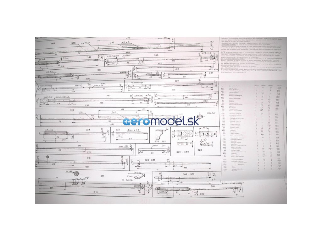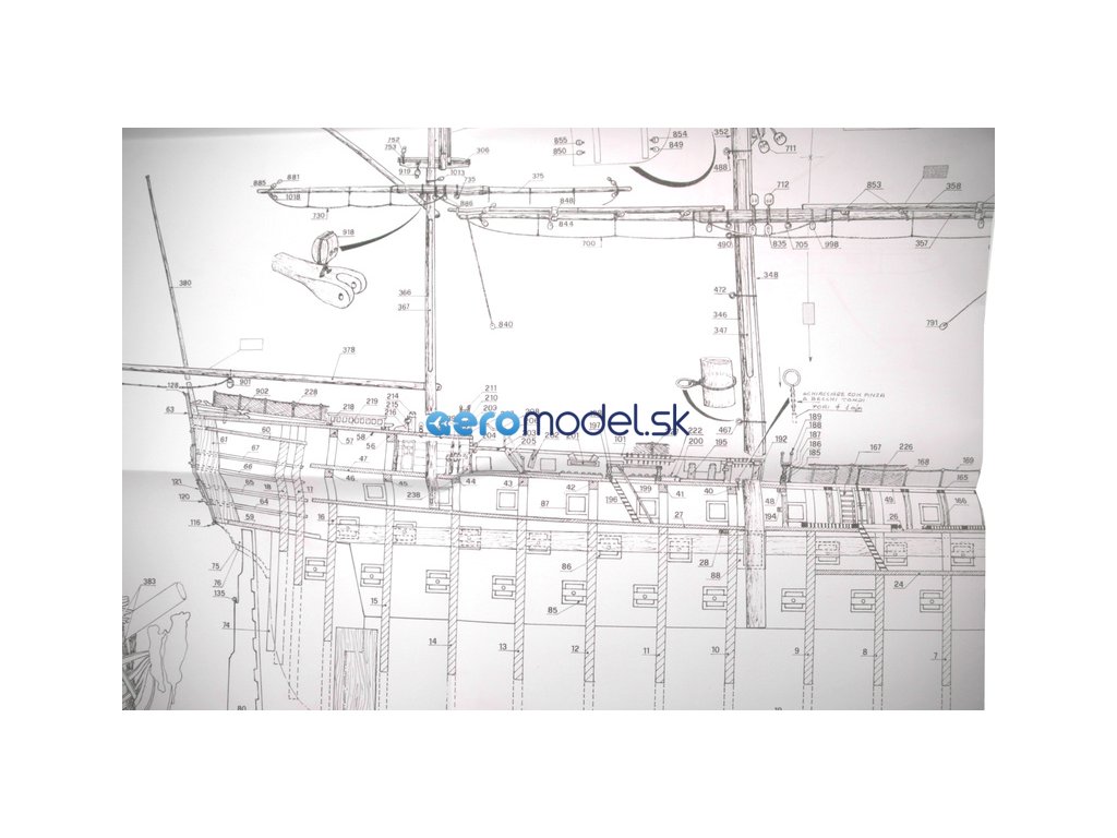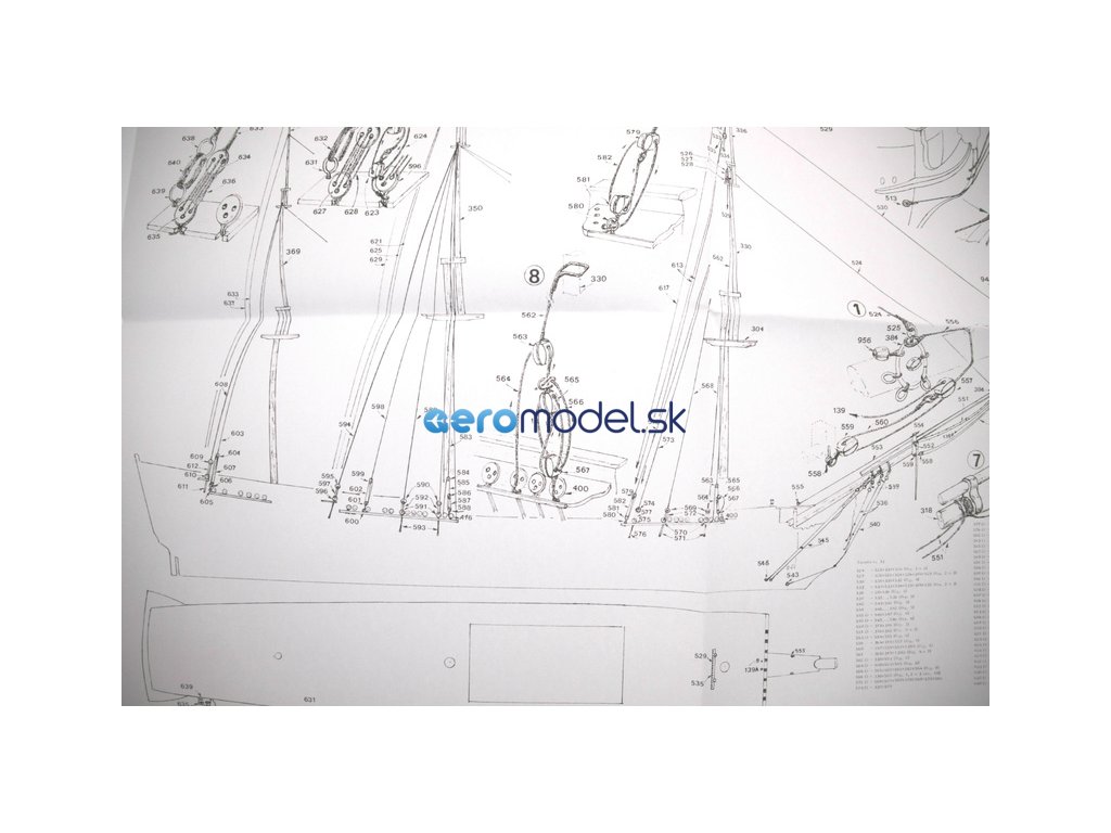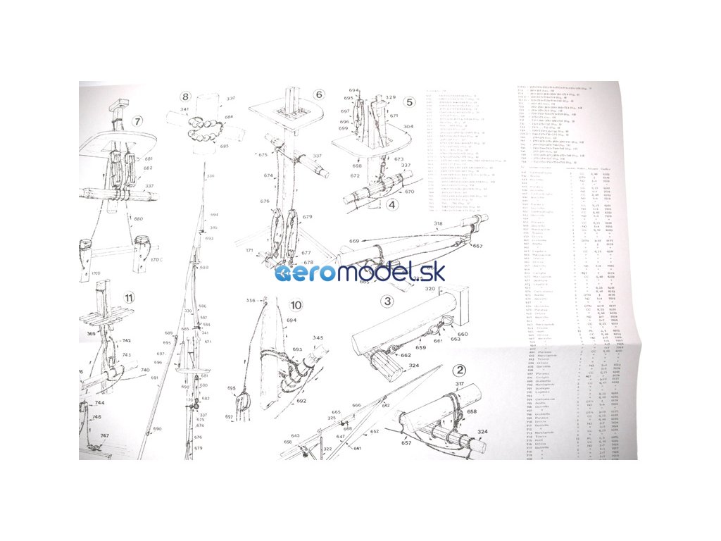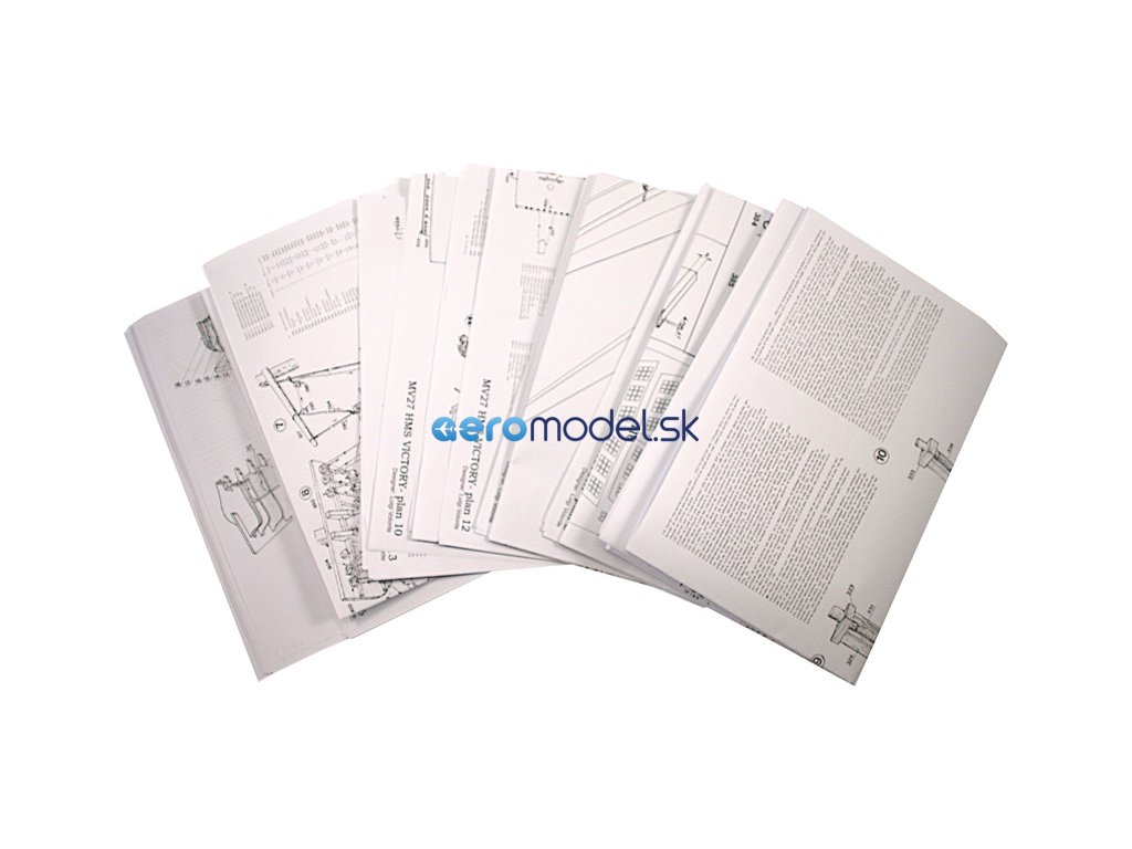 Set obsahuje kompletní sadu výkresové dokumentace modelu v měřítku 1:1 s postupem stavby, na výkrese jsou pečlivě označeny díly a je zde i seznam jednotlivých součástí modelu.