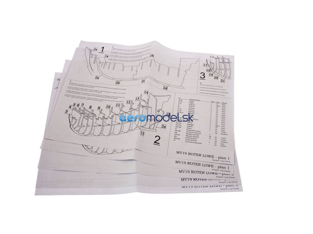 Set obsahuje kompletní sadu výkresové dokumentace modelu v měřítku 1:1 s postupem stavby, na výkrese jsou pečlivě označeny díly a je zde i seznam jednotlivých součástí modelu.