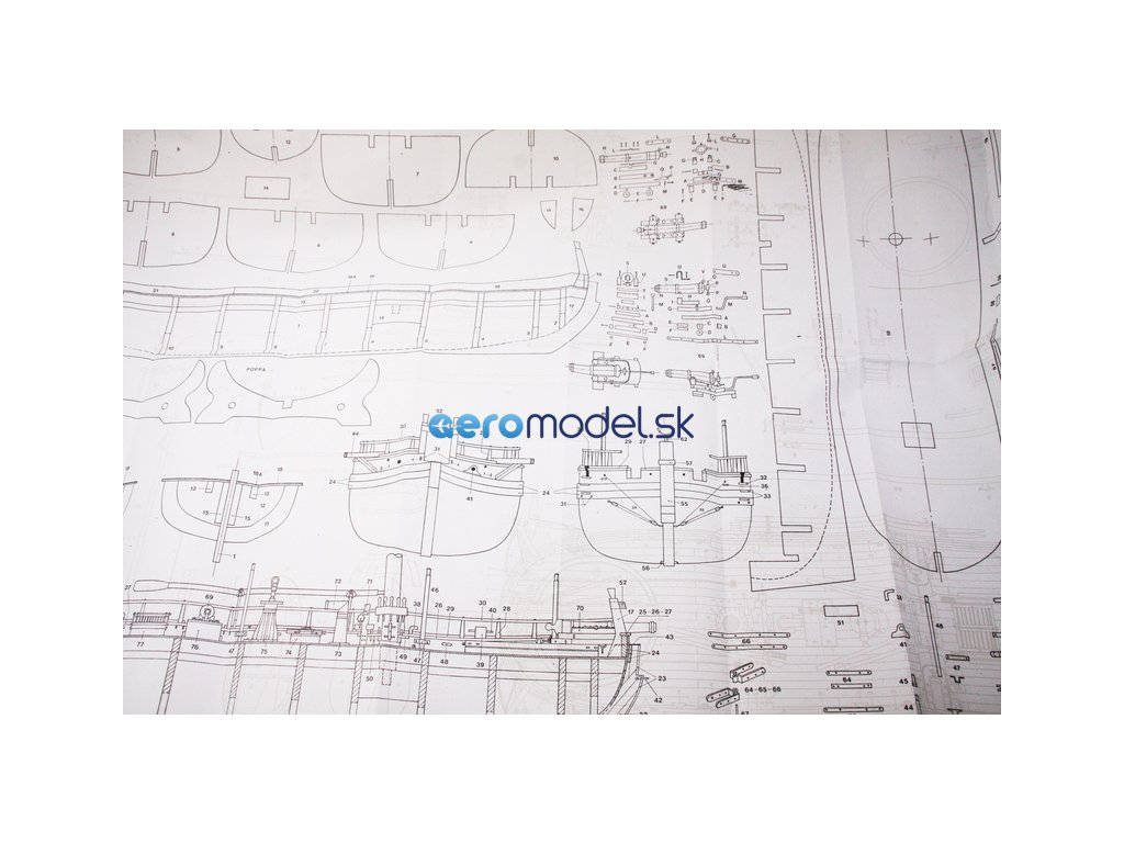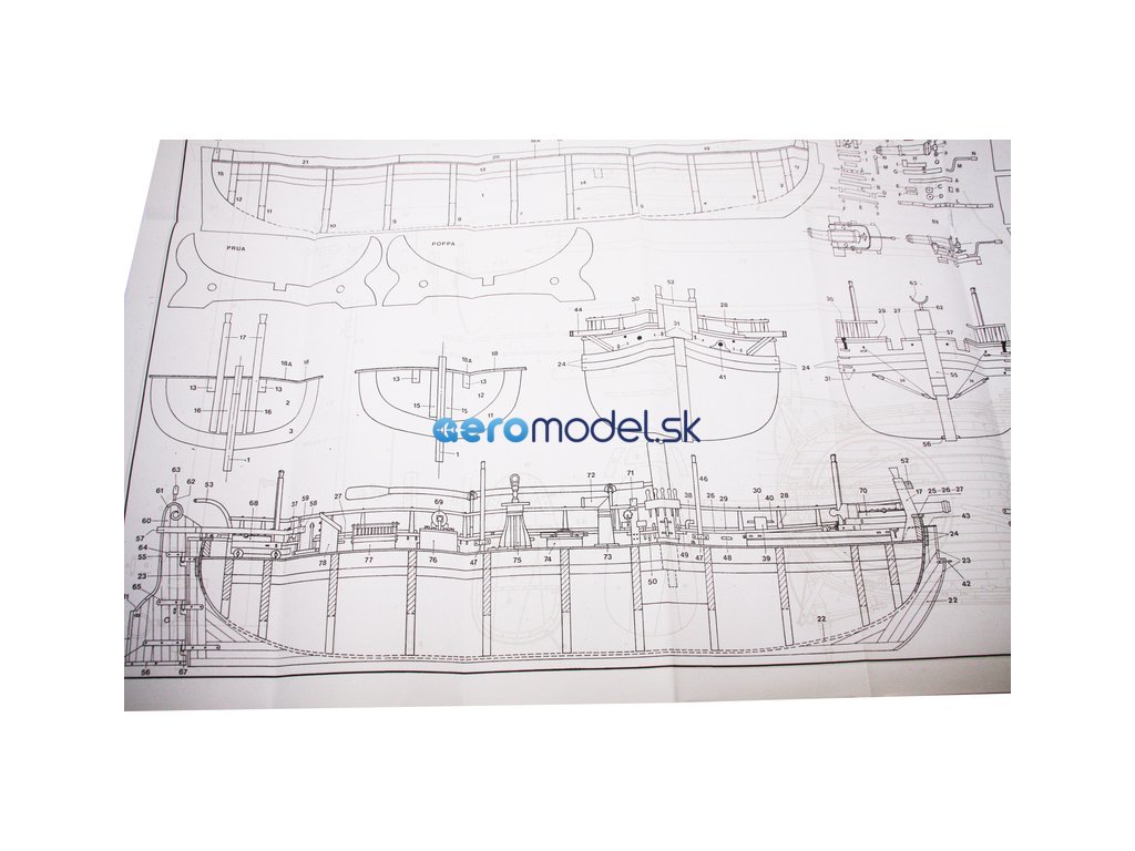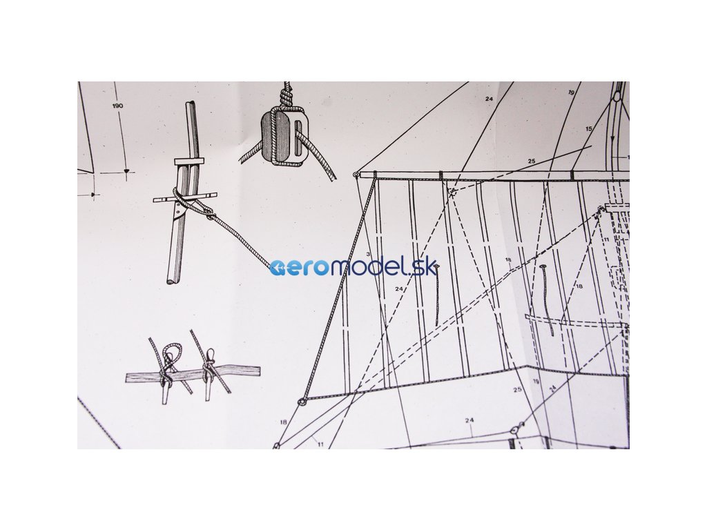 Set obsahuje kompletní sadu výkresové dokumentace modelu v měřítku 1:1 s obrázky jednotlivých detailů. Na výkrese jsou v měřítku nakresleny montážní sestavy, jejich kompletace a to včetně stěžňů a ráhen a způsob vázání lanoví. Vícejazyčný postup stavby rámcově upravuje logické sestavení jednotlivých komponentů.