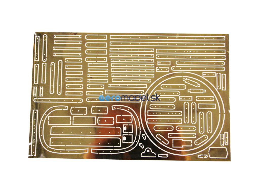 Po otevření víka krabice naleznete dřevěné díly modelu z překližky, sadu lišt, drobné součásti uzavřené v sáčcích, sadu výkresů a manuál.