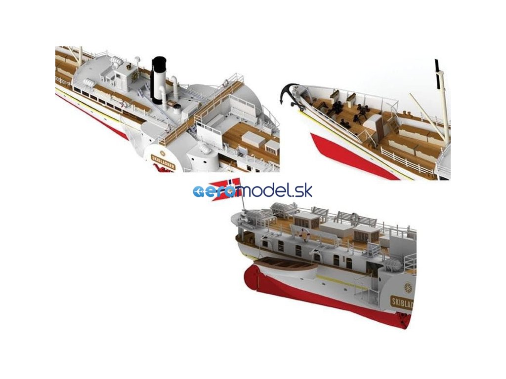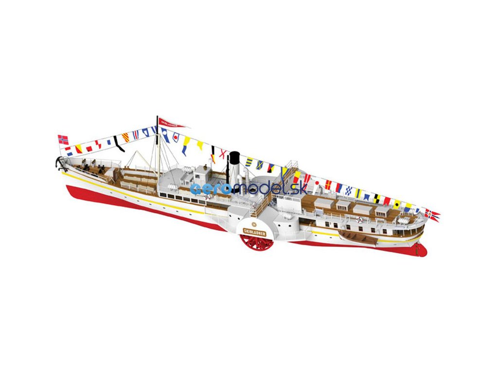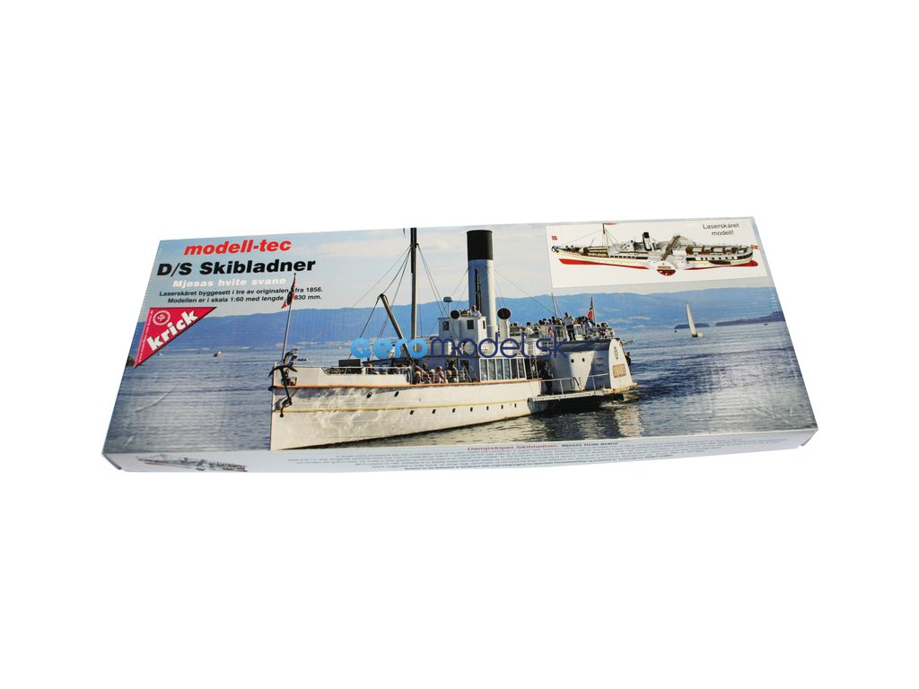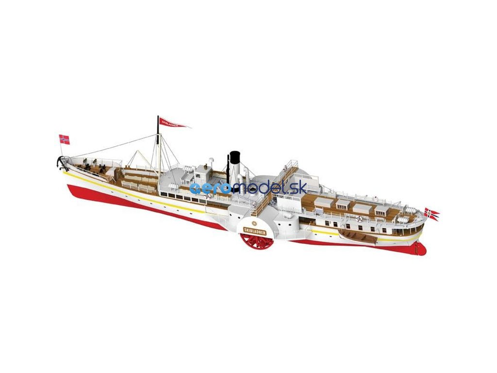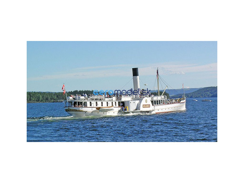 Stavebnice modelu Norského kolového parníku, Modell-Tec D/S Skibladner 1:60 kit, s množstvím detailů o délce 83 cm. Model lze sestavit jako neplovoucí nebo jej můžete vybavit RC soupravou a elektro pohonem a provozovat jako funkční loď.